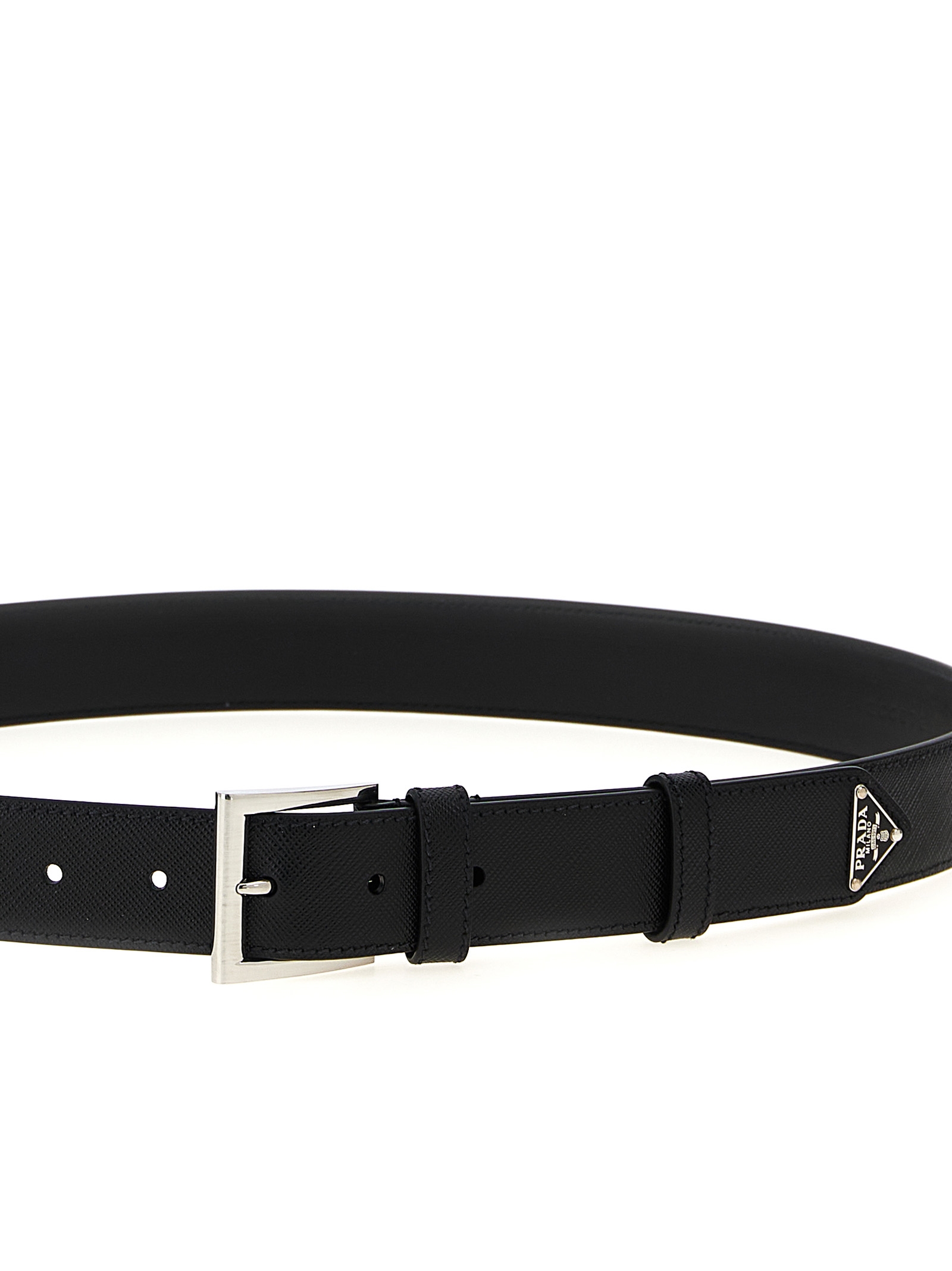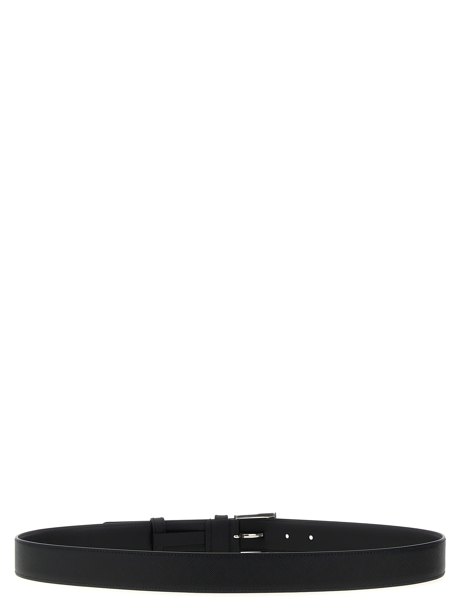 Saffiano leather belt with metal buckle.