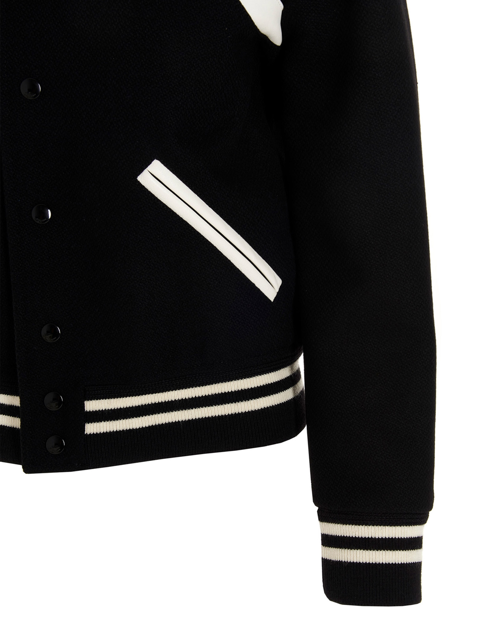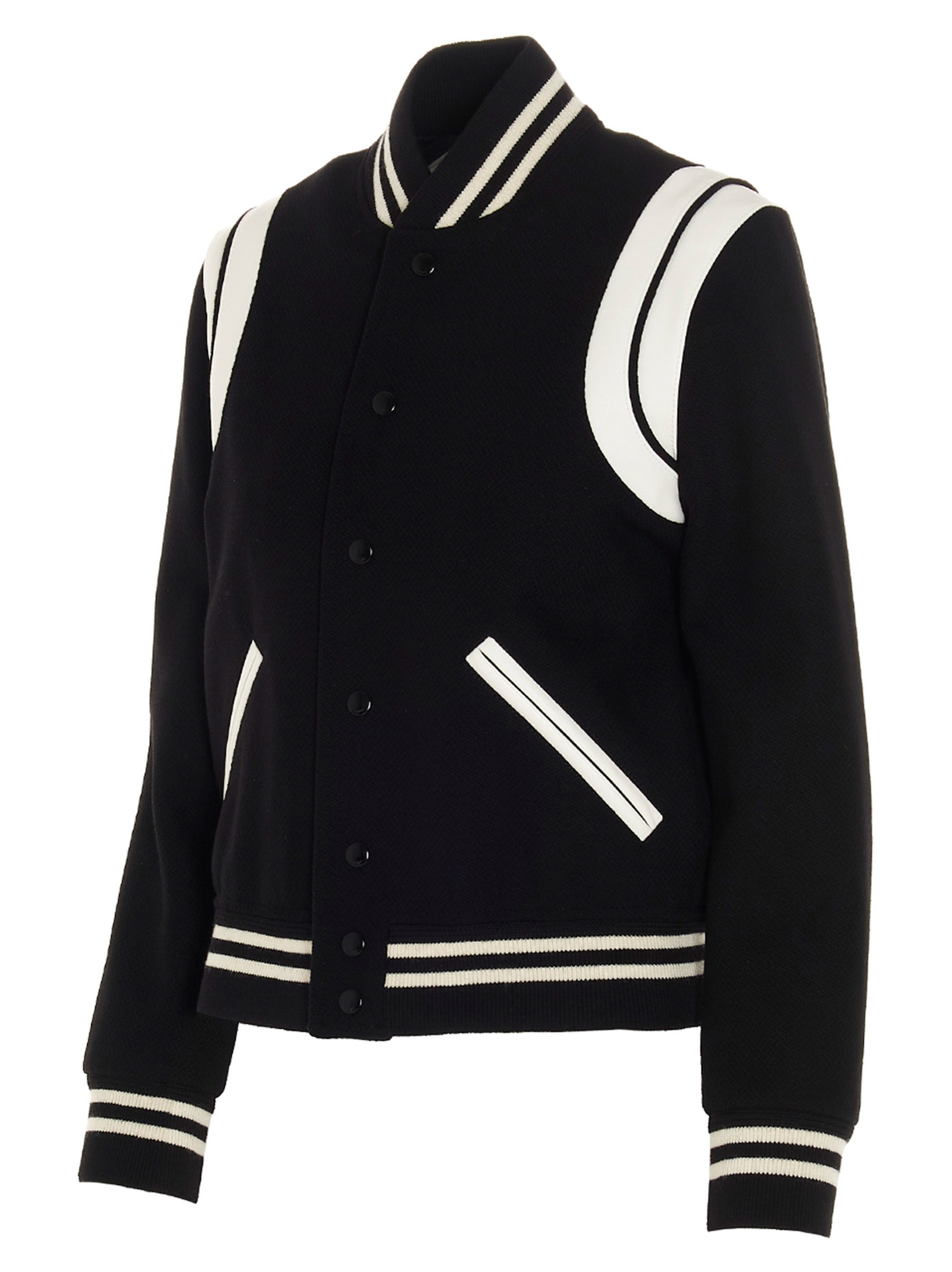 ‘Saint Laurent Teddy’ wool bomber jacket with snap button closure, contrast pockets.