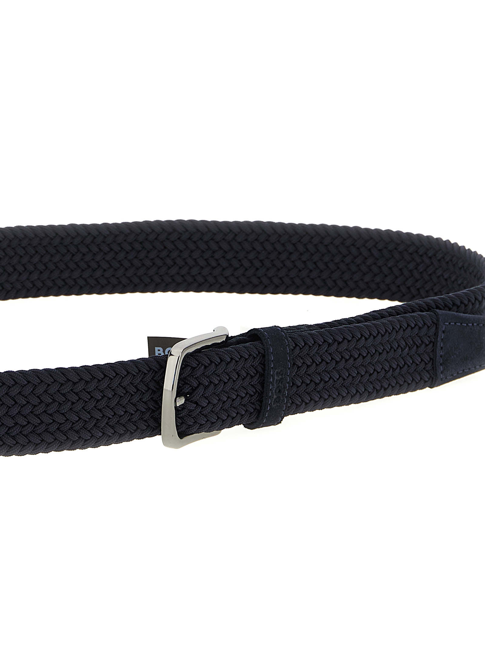 ‘Sash’ stretch woven fabric belt with tone-on-tone suede details and metal buckle.