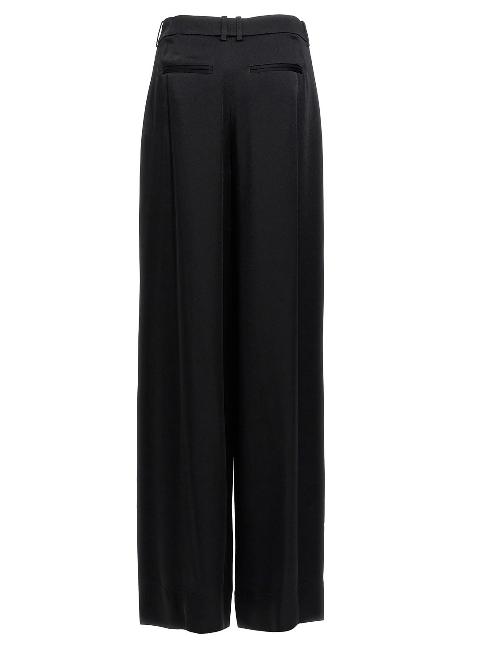 Satin crêpe pants with loose leg, high waist, silk lining, button closure and pockets.