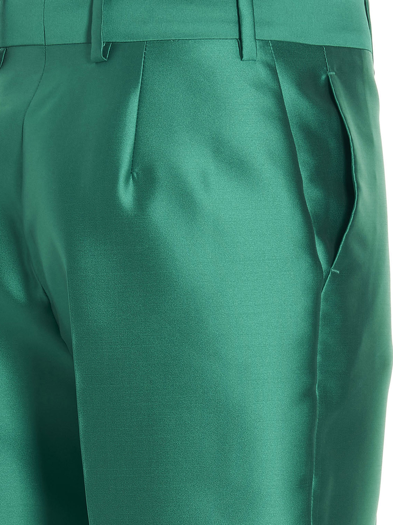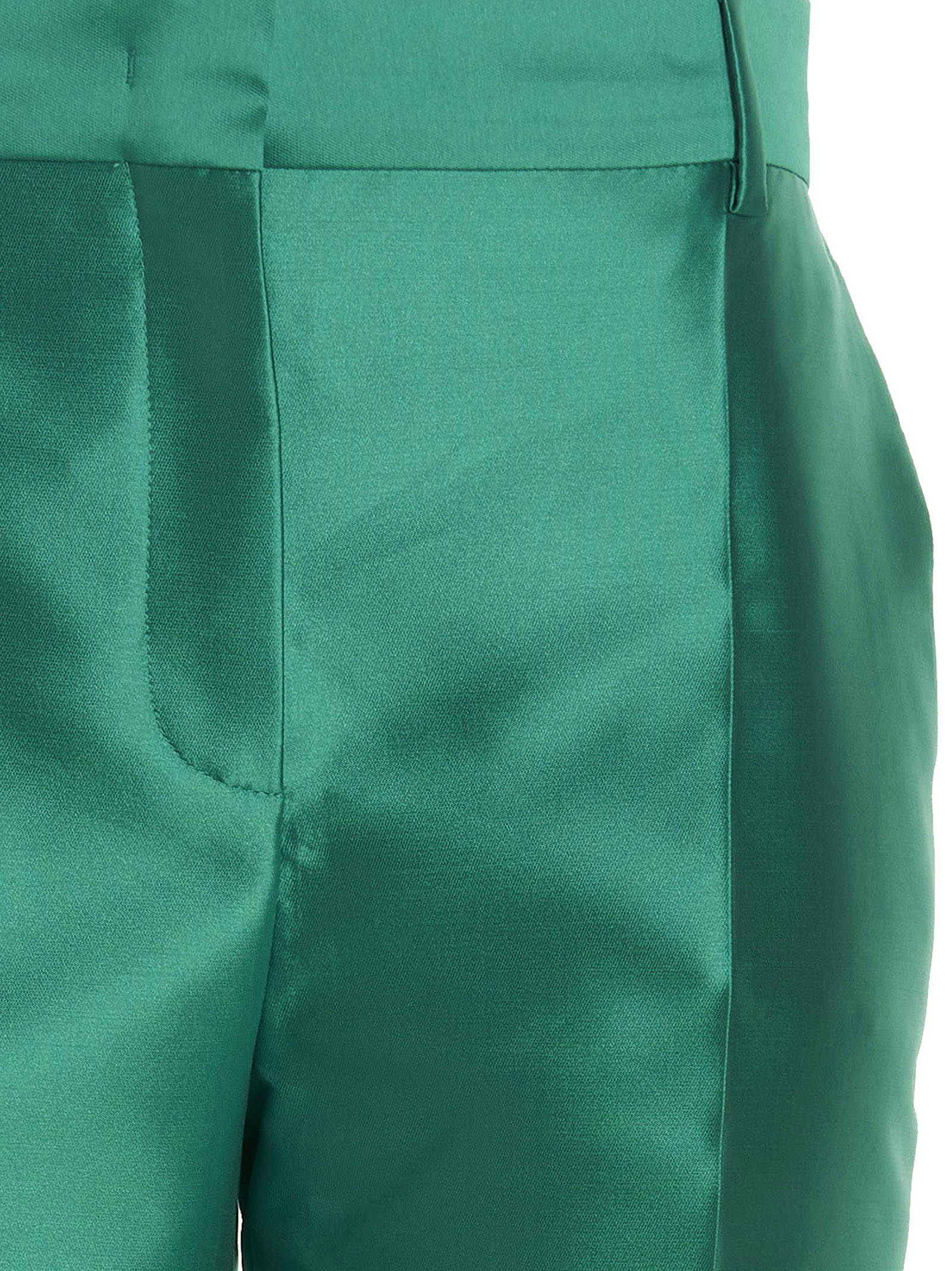 Satin fabric pants with straight leg, a hook-and-eye zip closure.