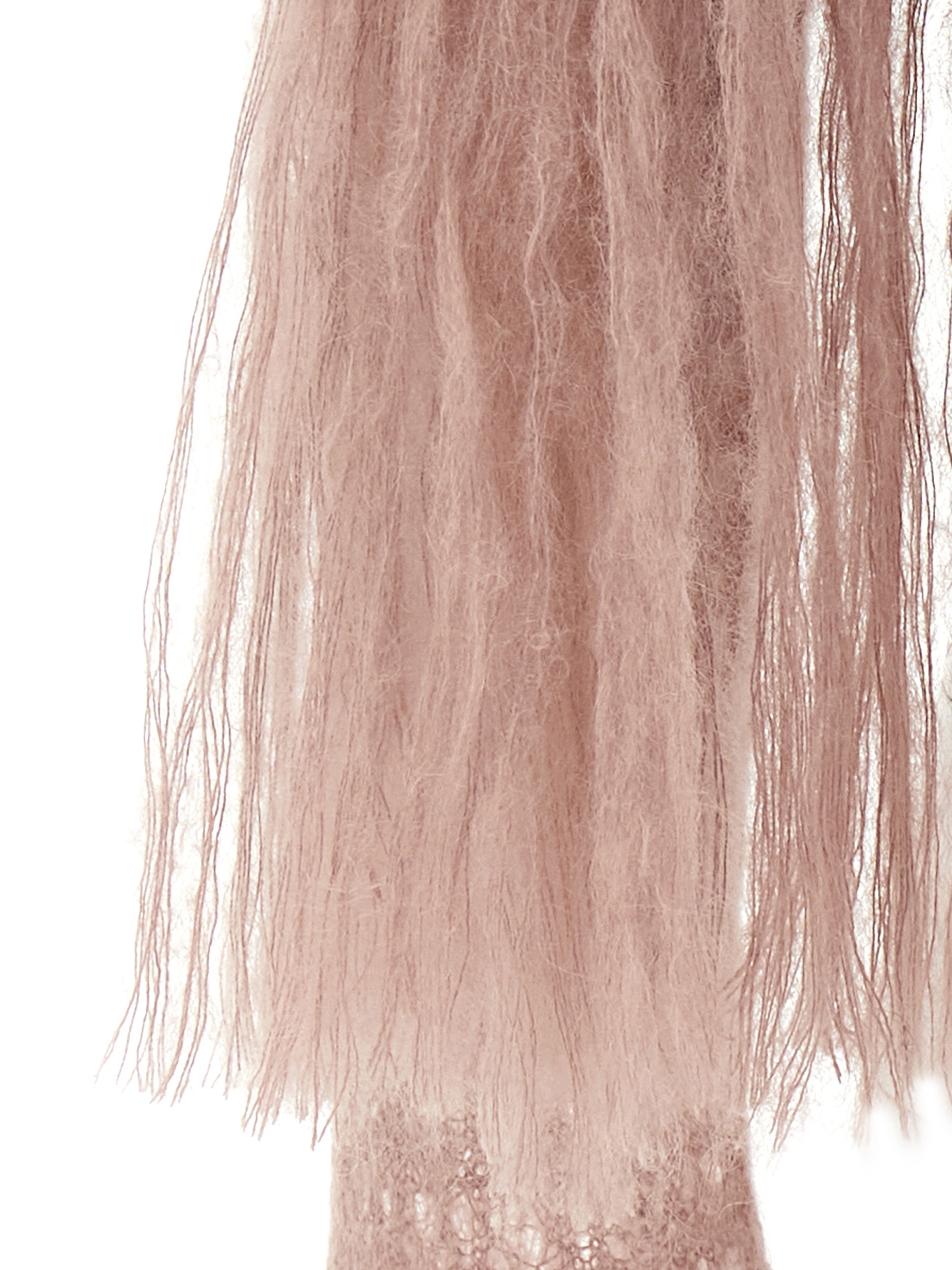 Cardigan in mohair blend crocheted effect I do not see, crop model, shawl neck with scarf to leave along the body or to rest on the shoulders, long sleeves.