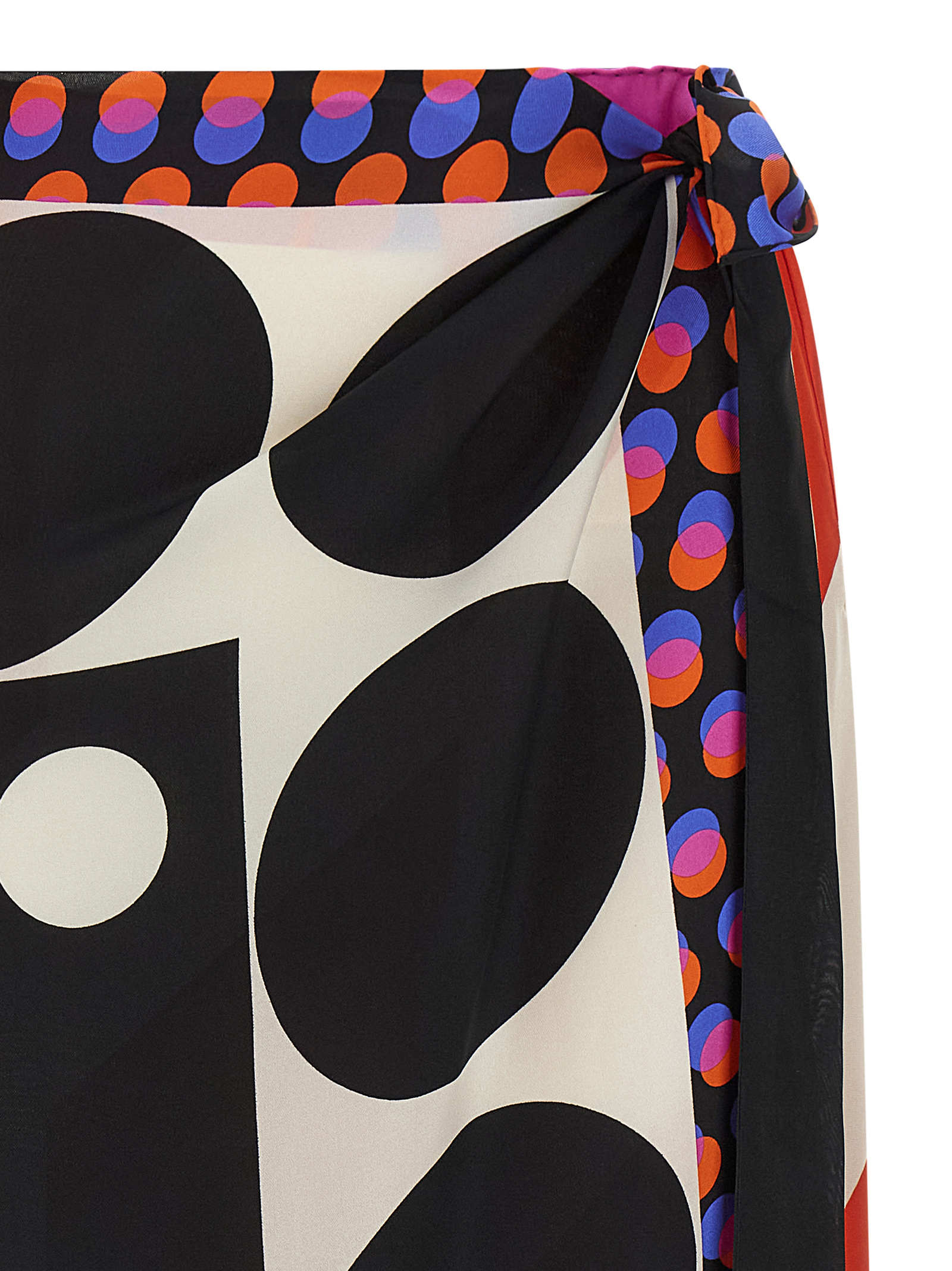 Scarfy’ silk midi skirt with contrasting graphic print, wallet style with side drawstring closure.