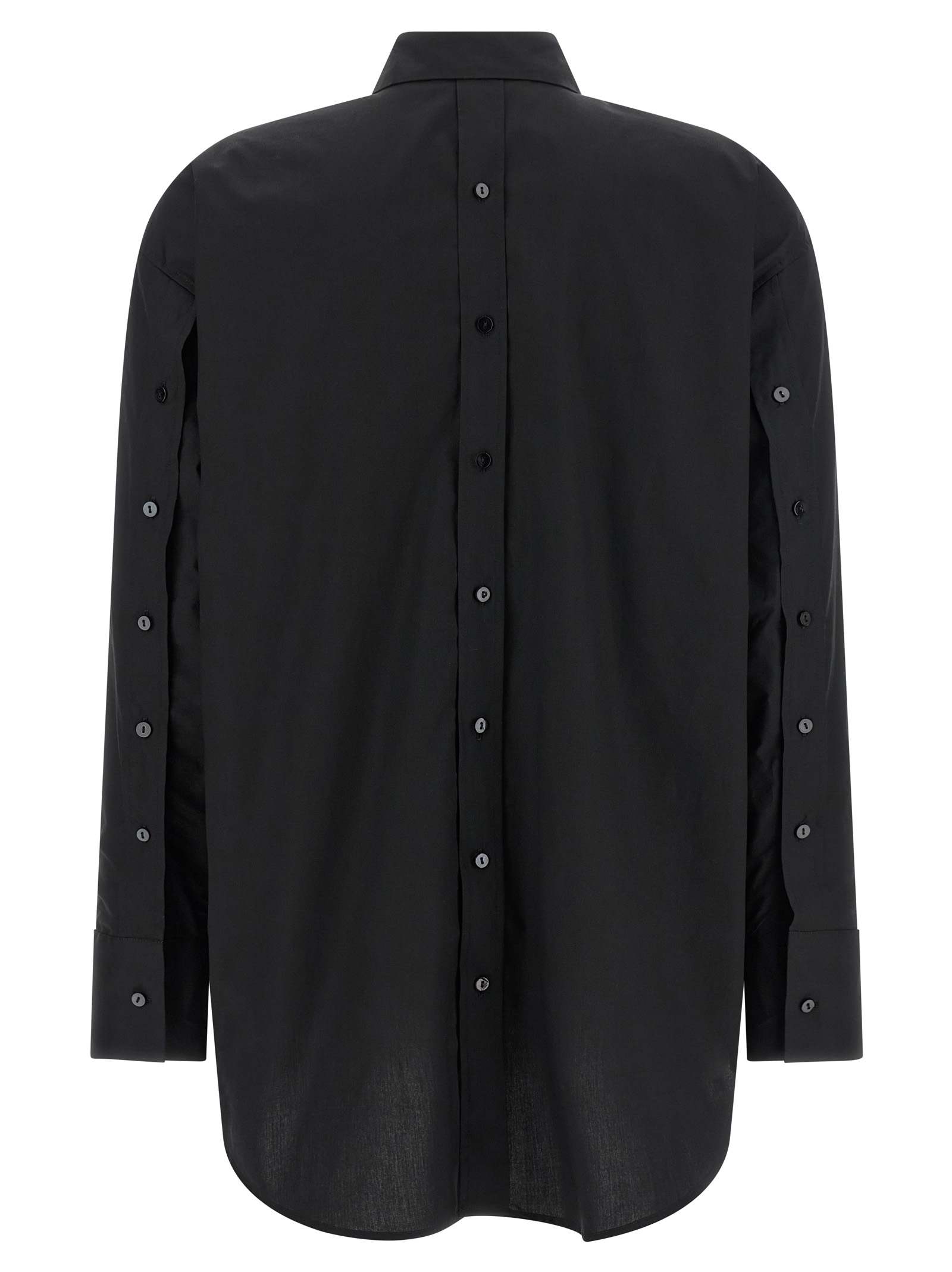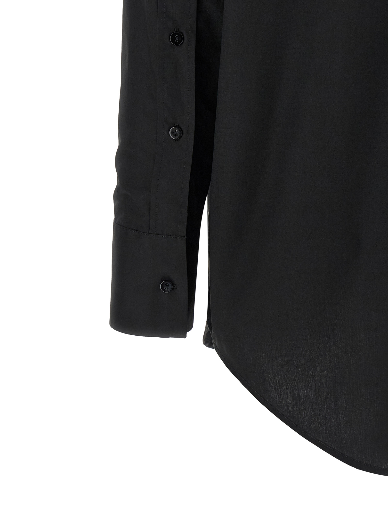 ‘Scarlet’ cotton poplin shirt with button closure at the back and on the sleeves, pointed collar, long sleeves with cuffs and dropped shoulders, rounded hem.