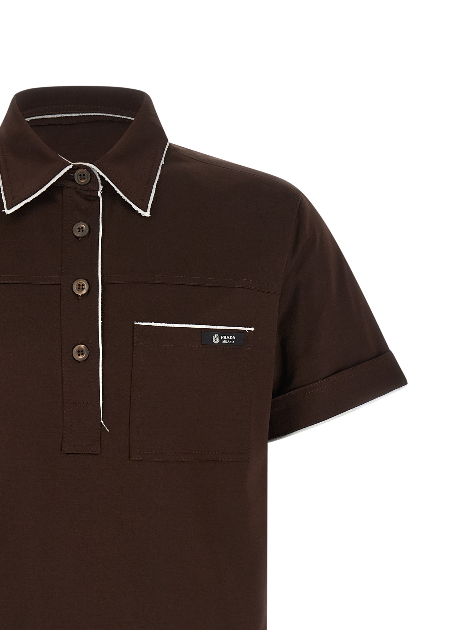 Scotland thread polo shirt with straight design, collar, button closure, front patch pocket with logo patch, contrast details, raw cuts on the bottom and on the hems.