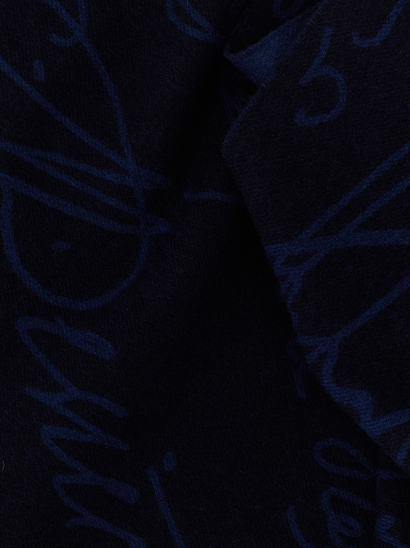‘Scritto’ wool jacquard scarf, fringed on the hem.