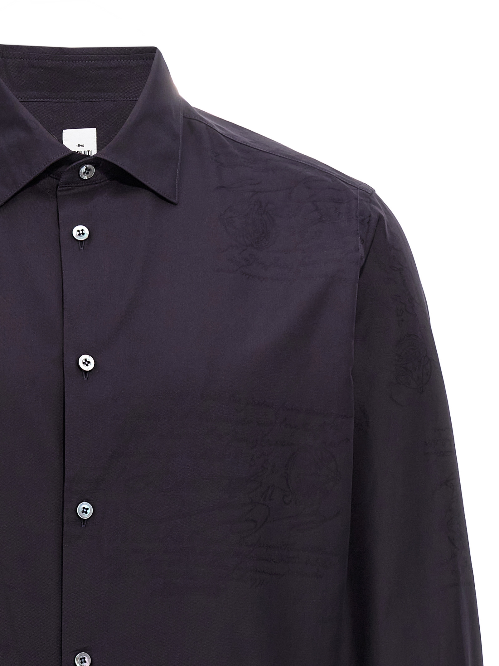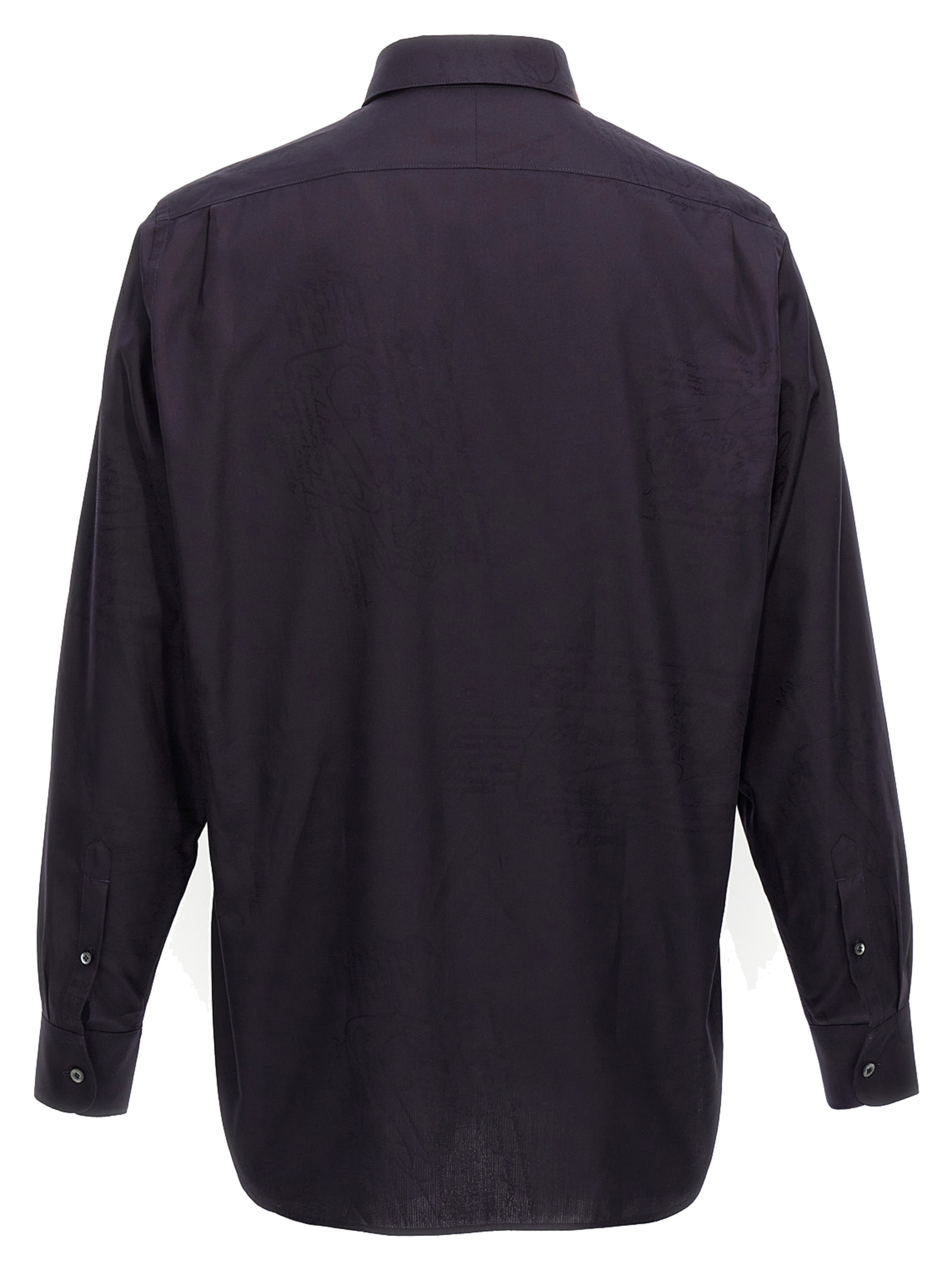 Cotton shirt with all-over tone-on-tone ‘Scritto’ pattern, button closure, long cuffed sleeves.