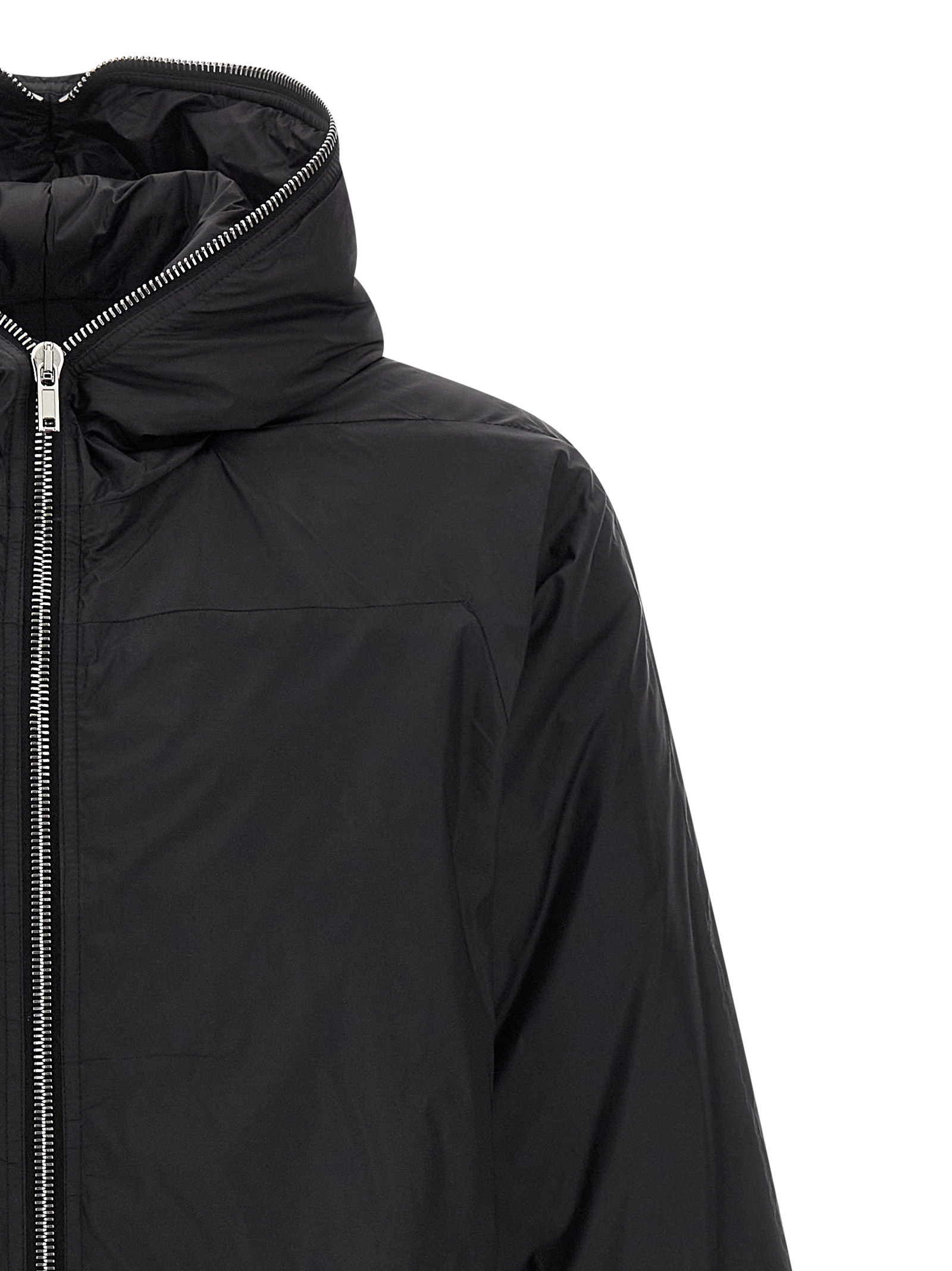 Windproof nylon ‘Sealed windbreaker’ parka with hood, padding, front zip closure, front pockets, long sleeves with elastic cuffs.