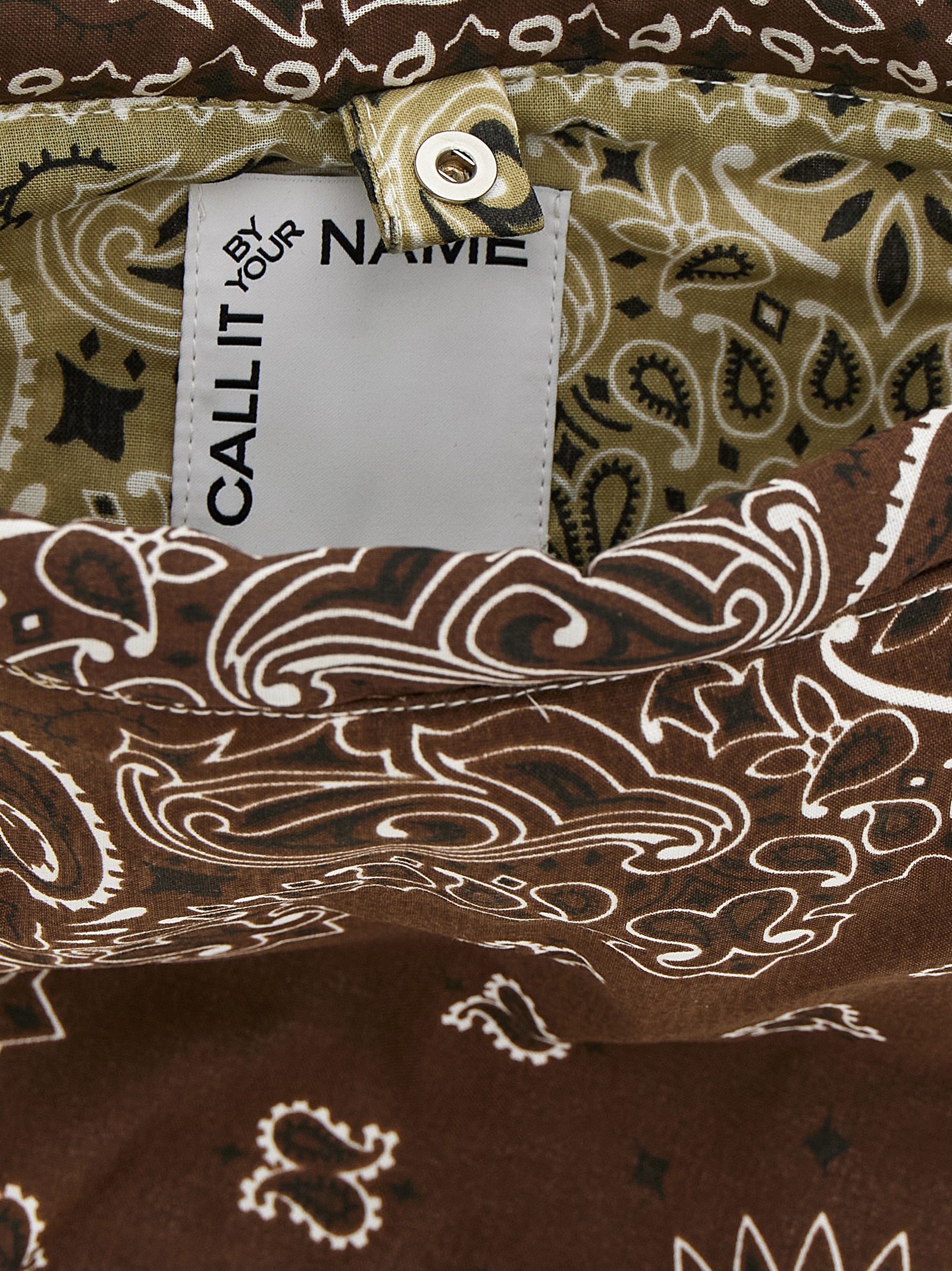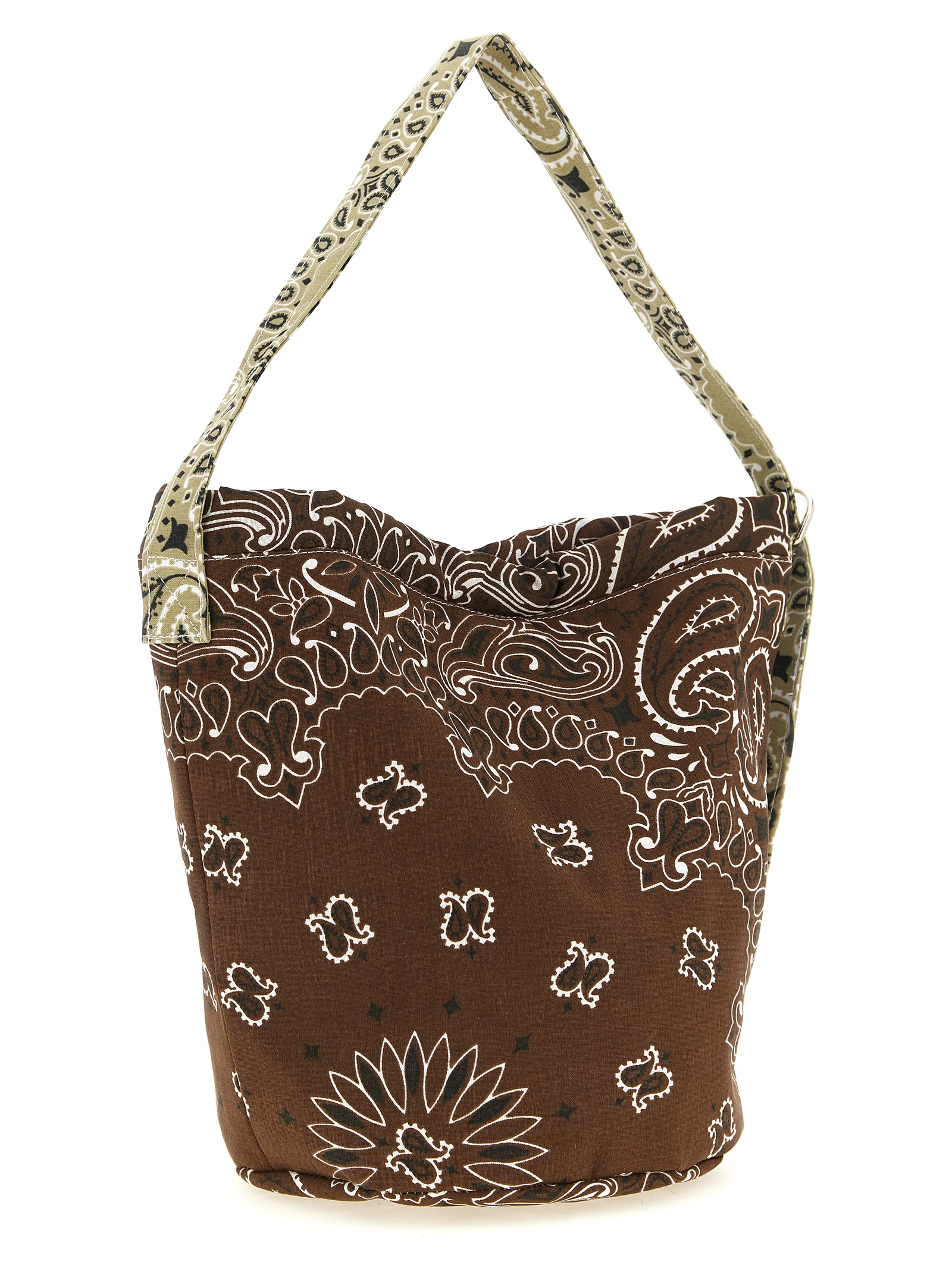 Seau’ bucket bag in all-over ‘Bandana’ print cotton, internal snap button closure, adjustable handle with two half-moon rings and a snap hook.