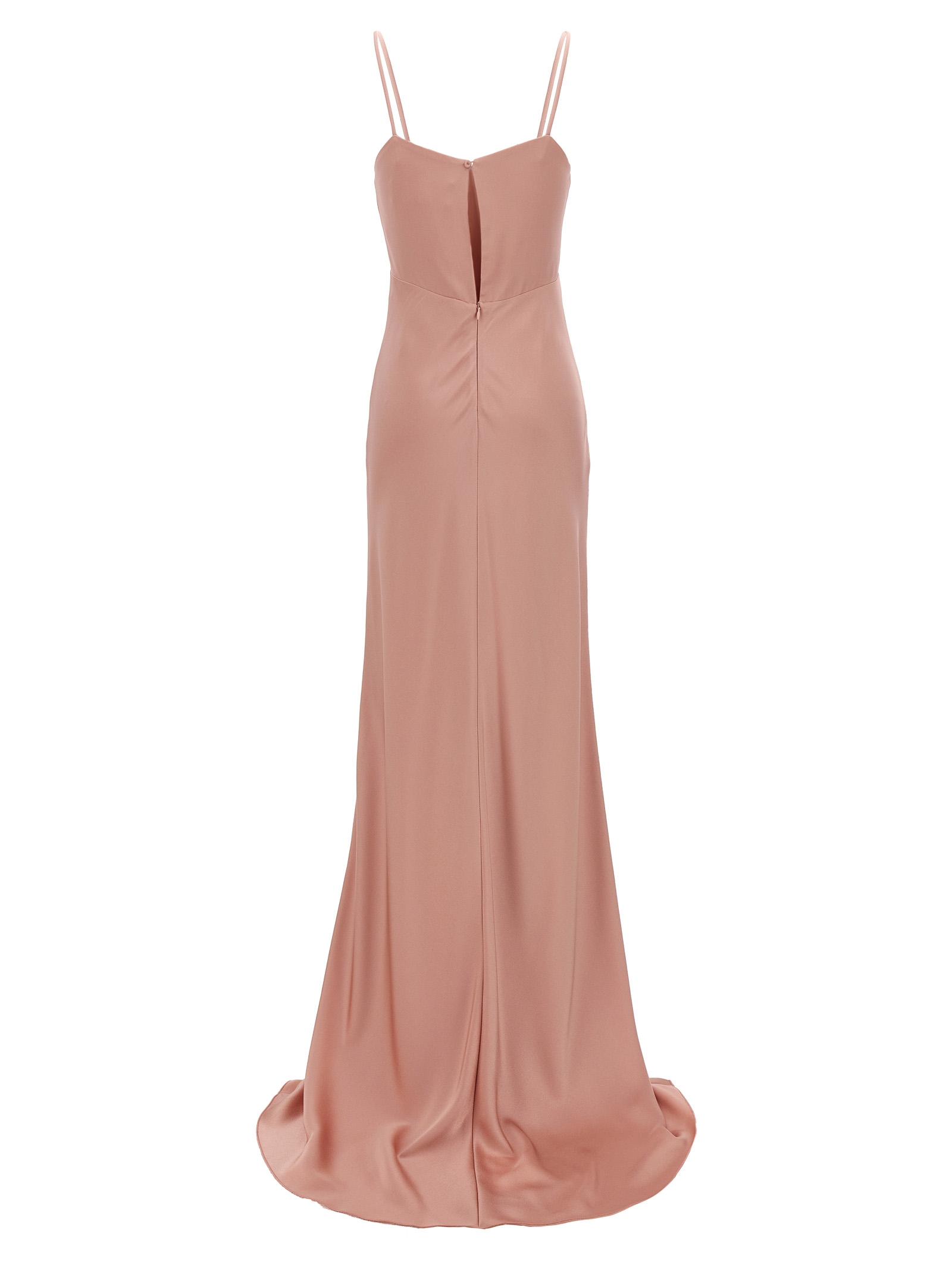 Selce long dress with underdress in a shiny satin envers and viscose blend, wide V-neck with thin straps, and back zipper closure.