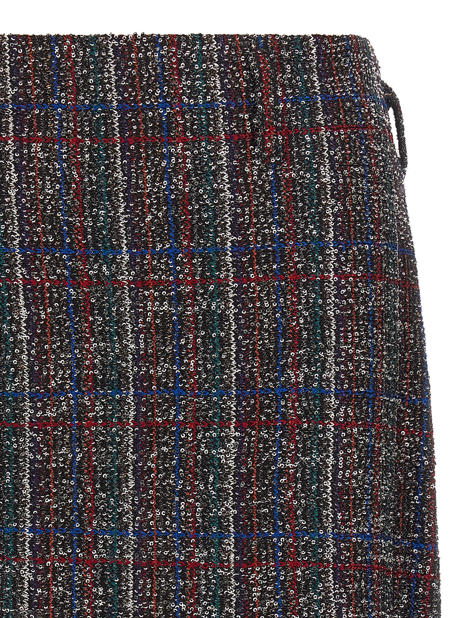 Tartan patterned viscose blend mini skirt with all-over micro sequin application, side zip closure, lining.
