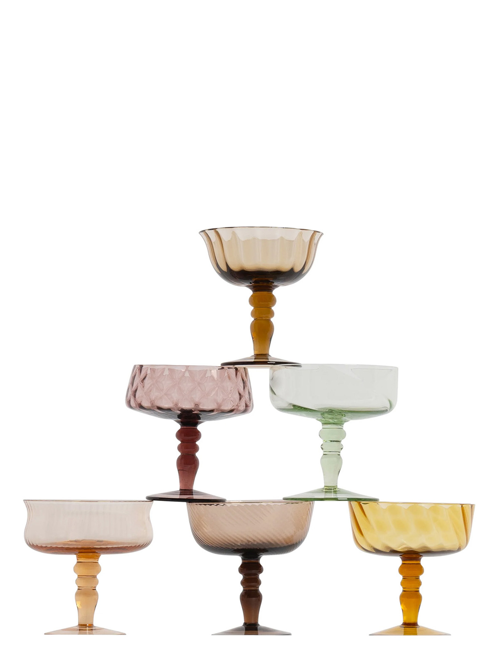 Set of 6 Assorted Shaped Cups in Blown Glass in color paste.