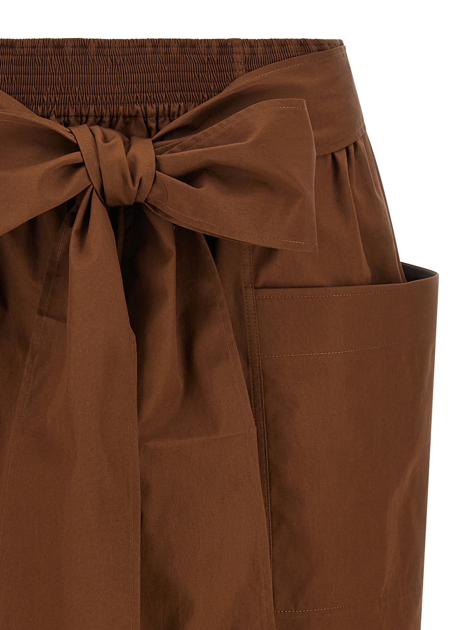 Midi skirt in cotton poplin pattern, sheath skirt, elastic waistband with tonal sash to tie at the front, side patch pockets, tone-on-tone embroidered logo on the back.
