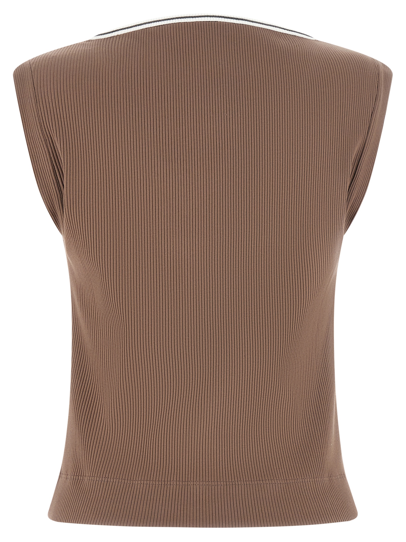 Ribbed stretch cotton jersey tank top with contrast V-neck and Monile ‘Shiny Trim’ detail.