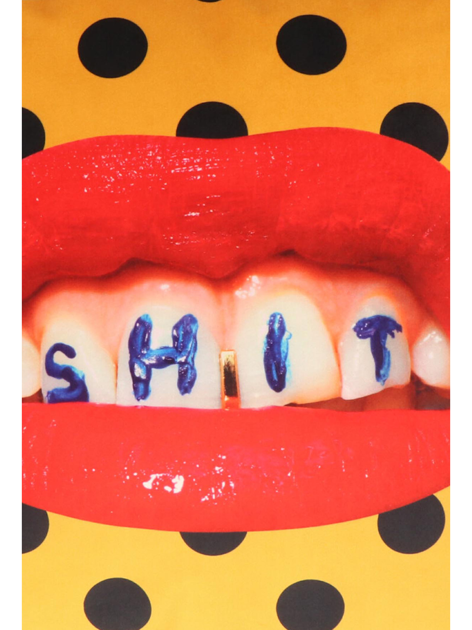 ‘Shit’ cushion in collaboration with Toiletpaper, with a removable cover, and goose down padding.