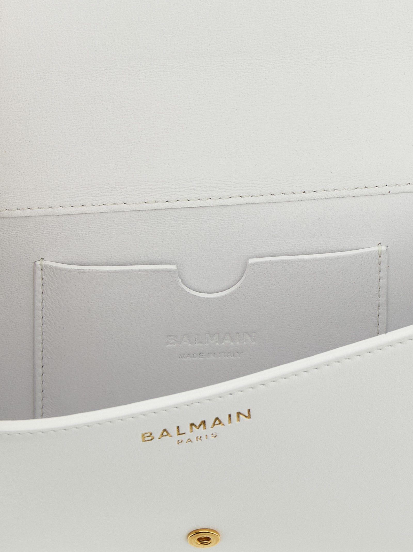 Wallet with smooth leather ‘Shuffle’ chain, model with metal belt and buckle detail, embossed gold inner logo, flap with automatic closure, chain shoulder strap with removable leather handle.