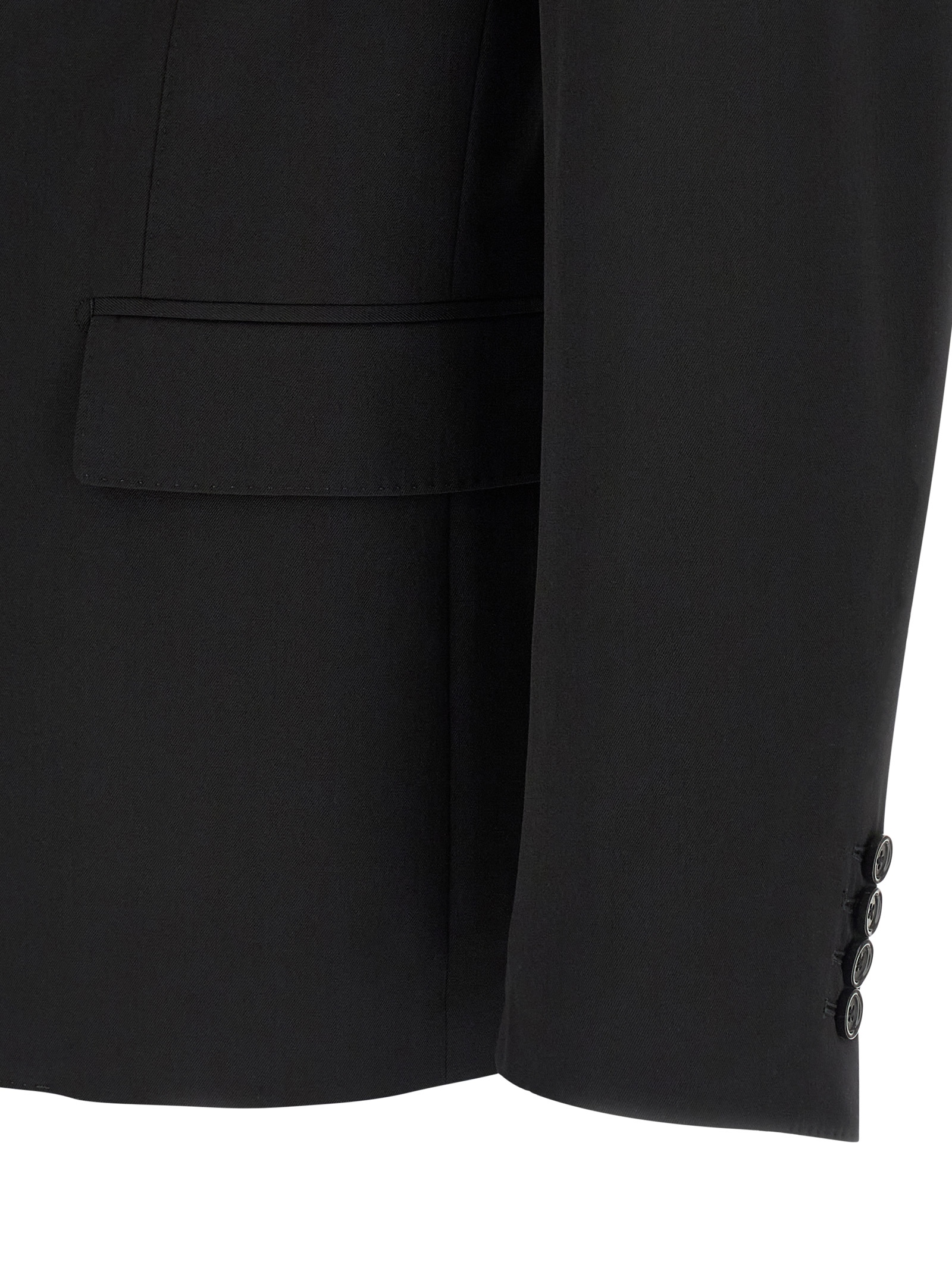 Bistretch wool canvas single-breasted blazer with ‘Sicilia Light’ base with button closure and embroidered front crest, breast pocket, flap pockets, structured shoulder strap, cuffs with open buttonholes, back split, silk lining, three inner pockets.