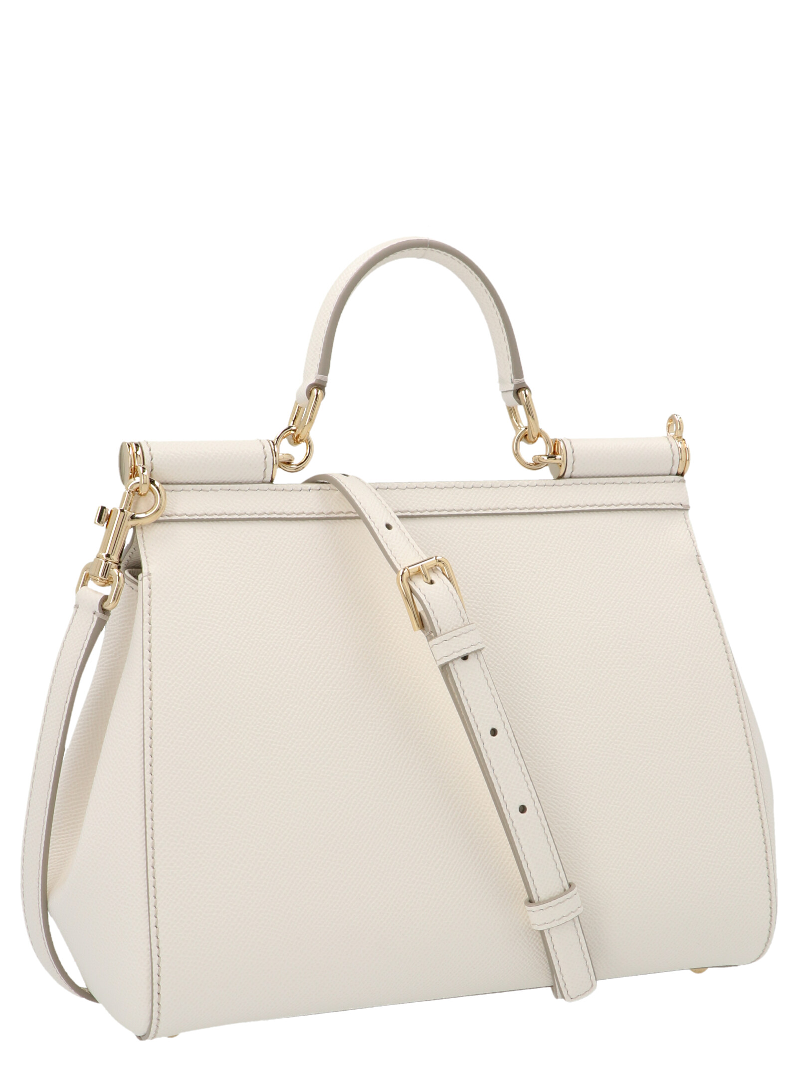 ‘Sicily’ handbag in leather featuring a flap closure with a metal logo, a handle and an adjustable leather shoulder strap.
