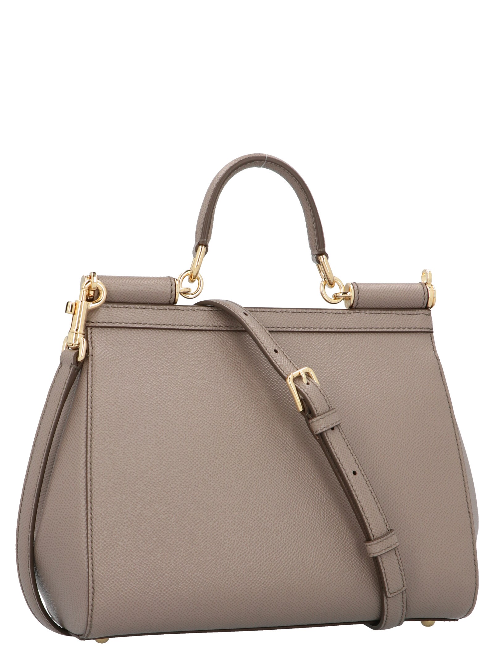 Signature Dolce & Gabbana dauphine leather handbag with a flap closure and an adjustable shoulder strap embellished with a gold logo tag.