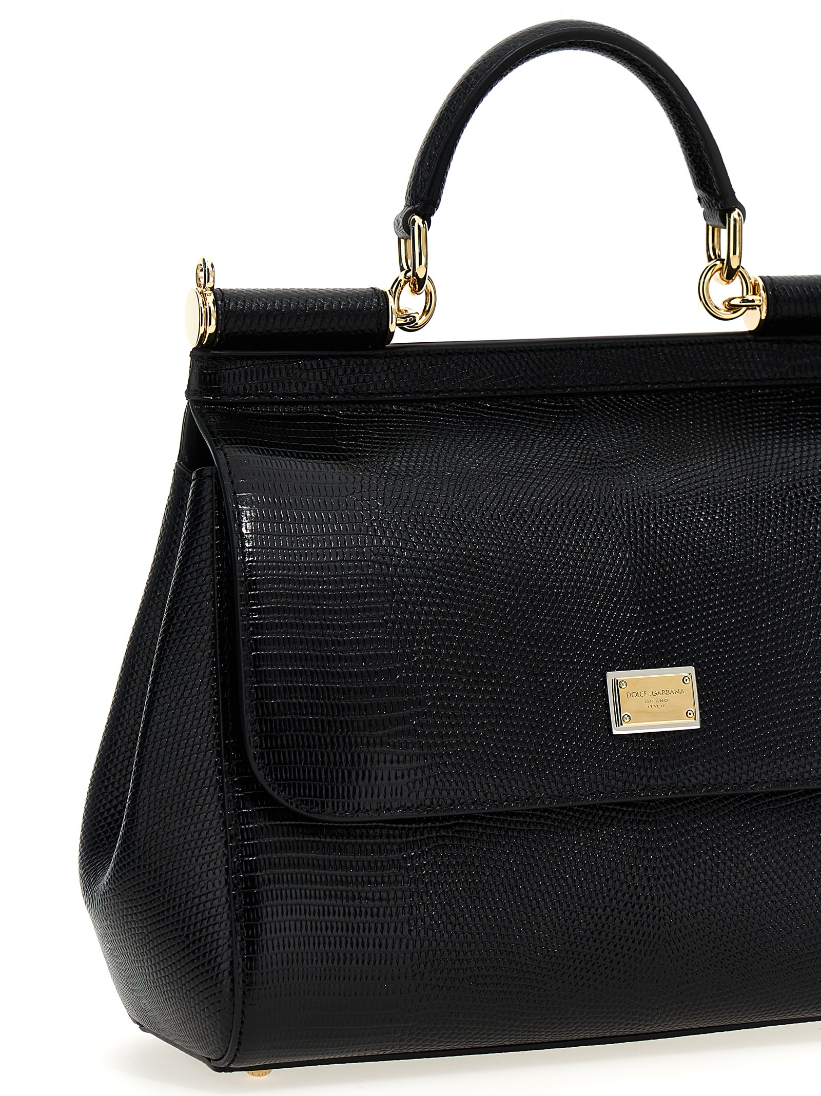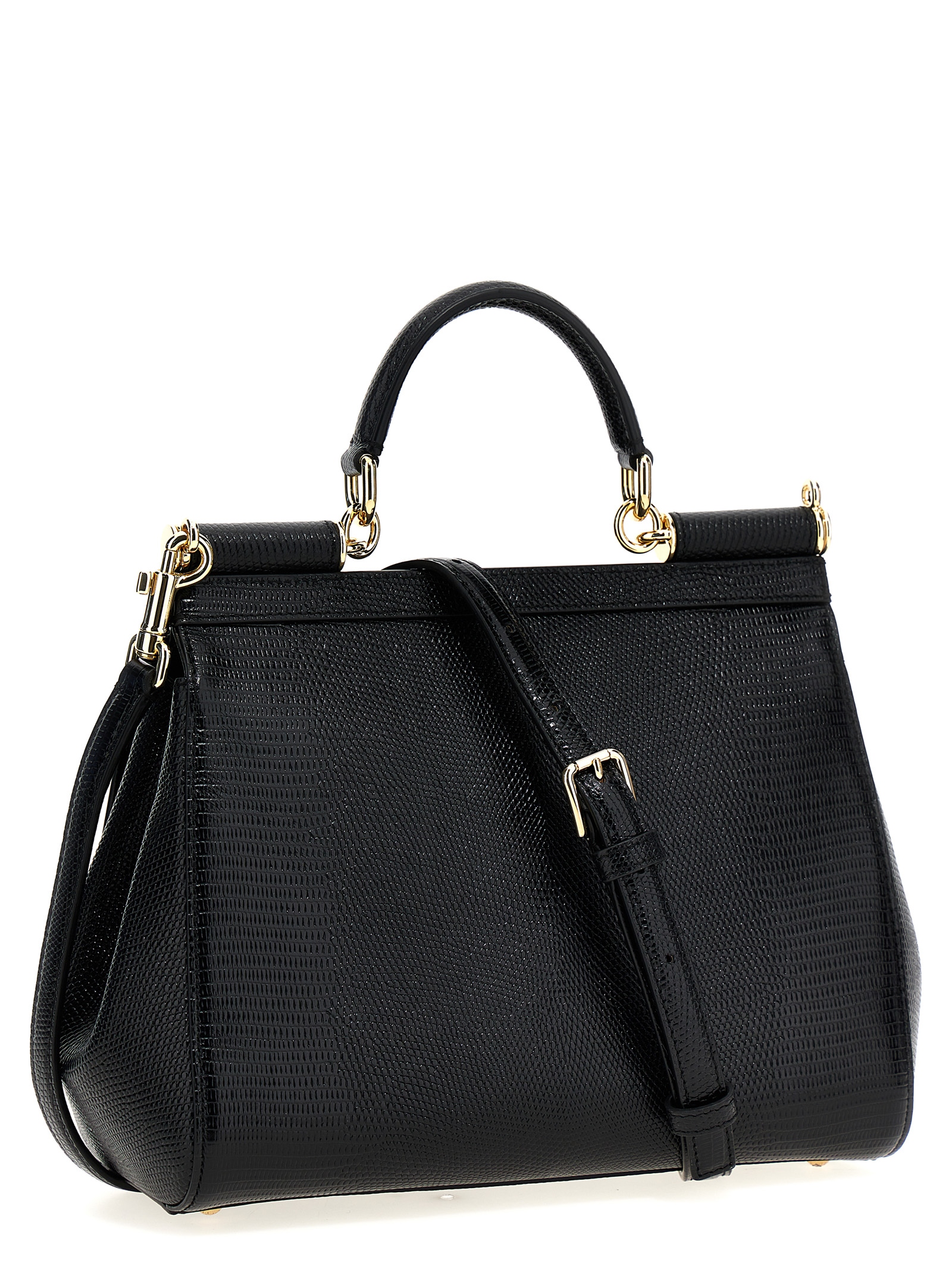‘Sicily’ large handbag in iguana-effect leather, bigalvanic logo tag, magnetic closure, fixed handle, adjustable and removable shoulder strap.