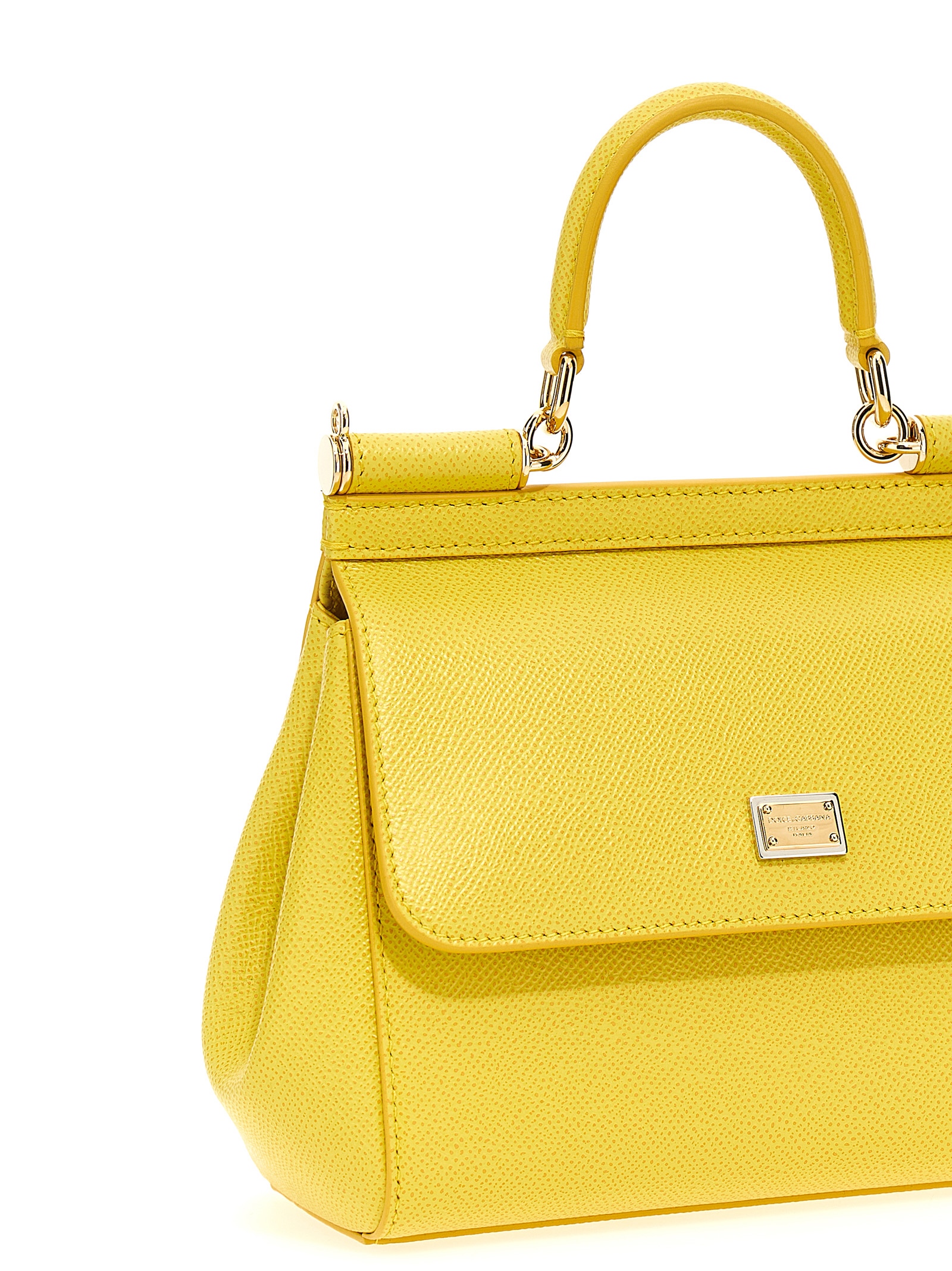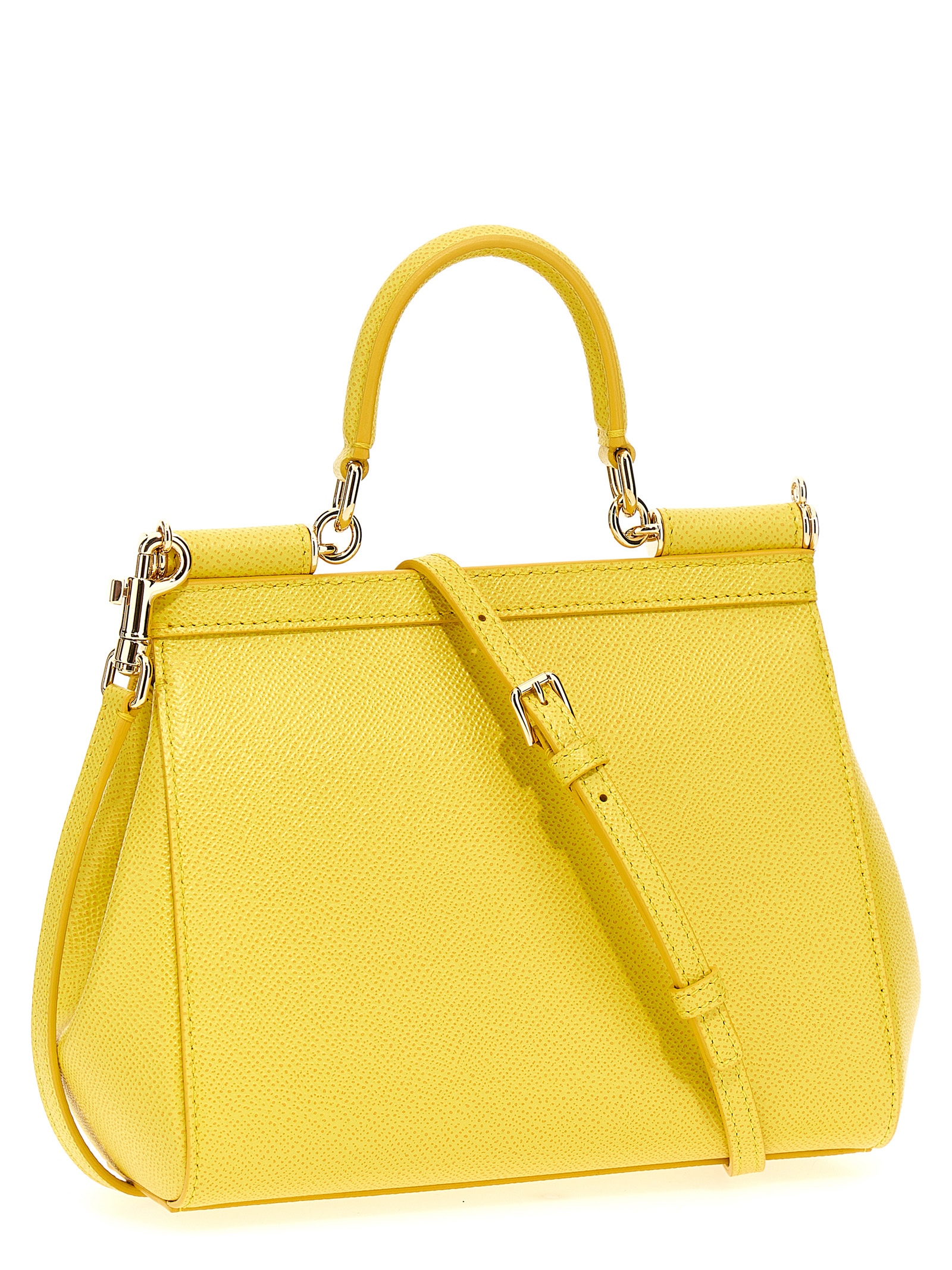 Dauphine ‘Sicily’ medium handbag in calf leather with magnetic flap closure, front logo tag, top handle, adjustable and removable leather shoulder strap.