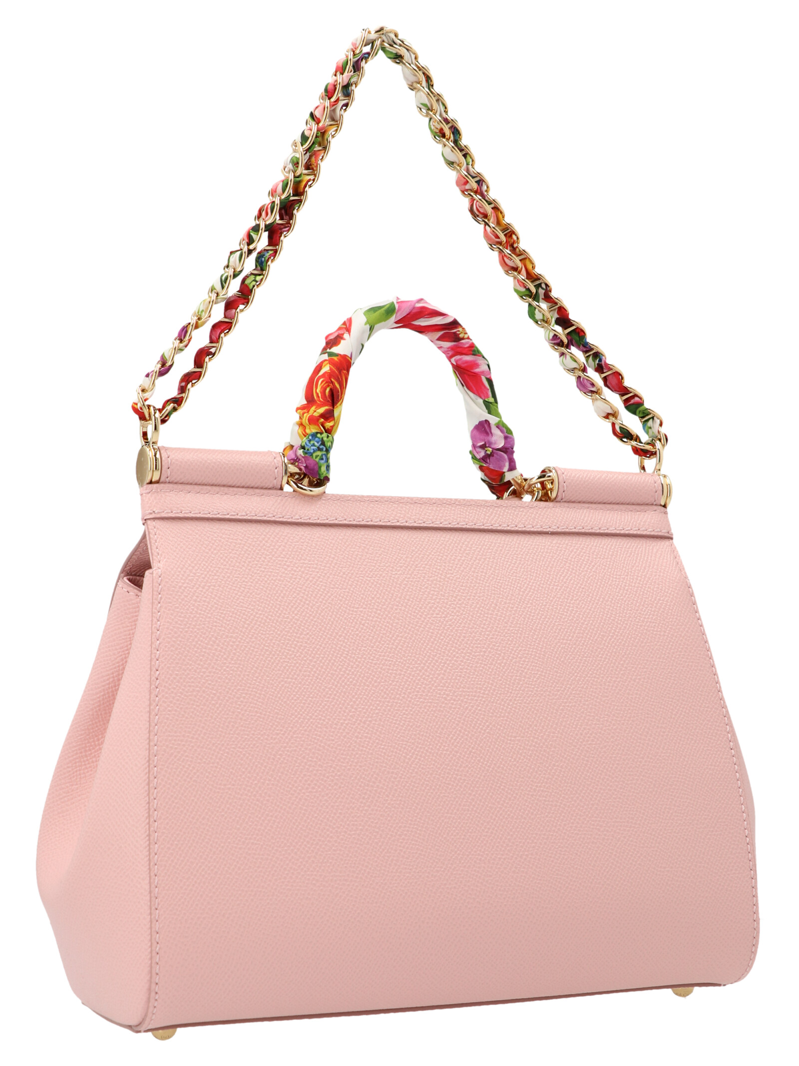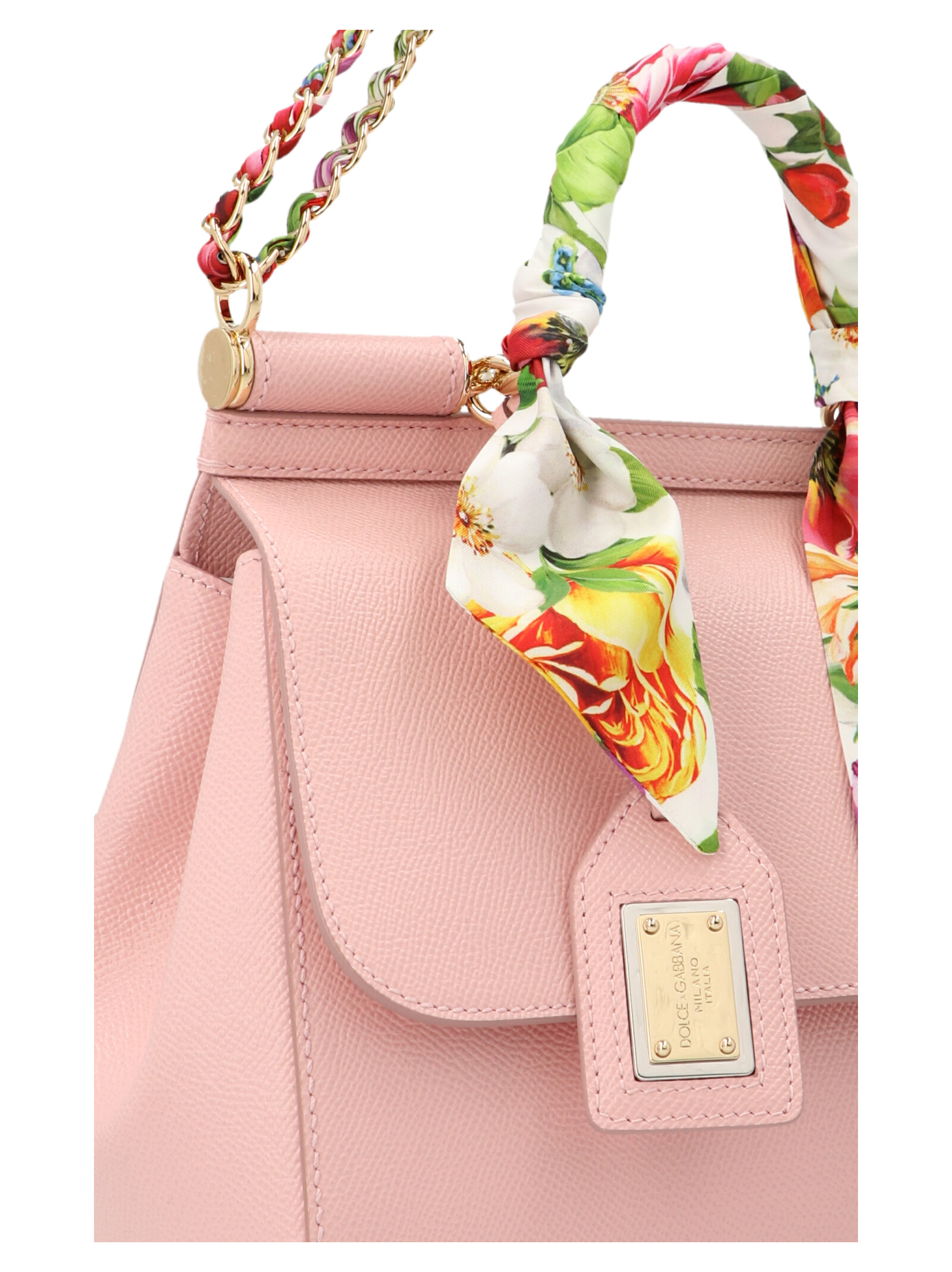 ‘Sicily’ midi handbag in dauphine leather featuring a logo plaque, a chain shoulder strap and a top handle.