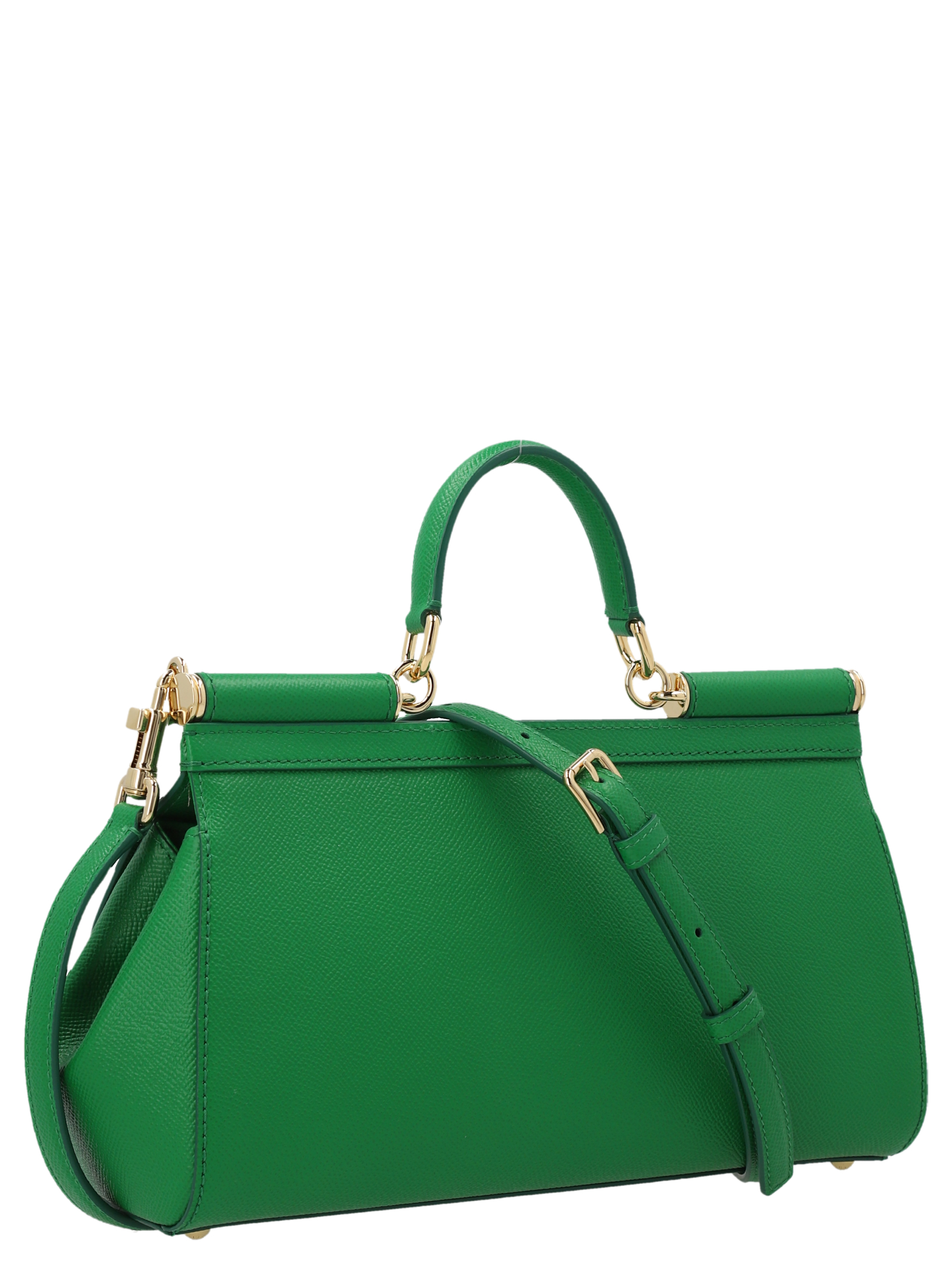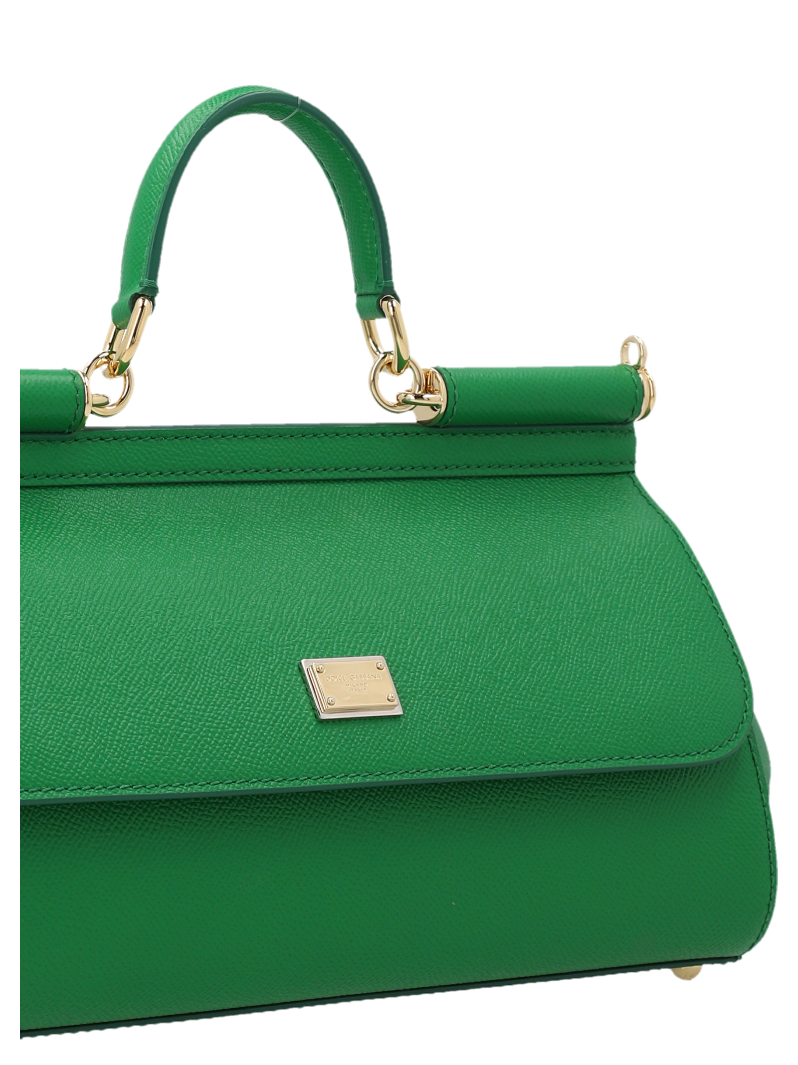 Sicily’ medium leather handbag with flap closure with metal logo application, top leather handle and awith adjustable and removable shoulder strap.