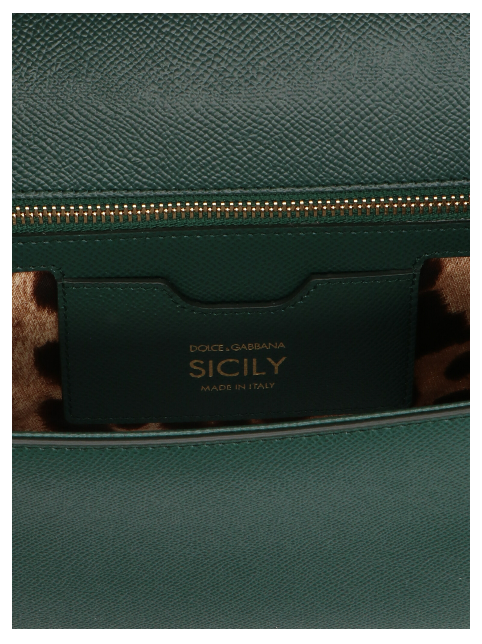 Medium ‘Sicily’ handbag made of Dauphine calfskin leather, featuring a front flap with a concealed press-stud closure, bigalvanic logo plaque, top handle and adjustable and removable shoulder strap, printed fabric lining, inner pocket with logoed zipper and smartphone pocket, metal feet at the base.