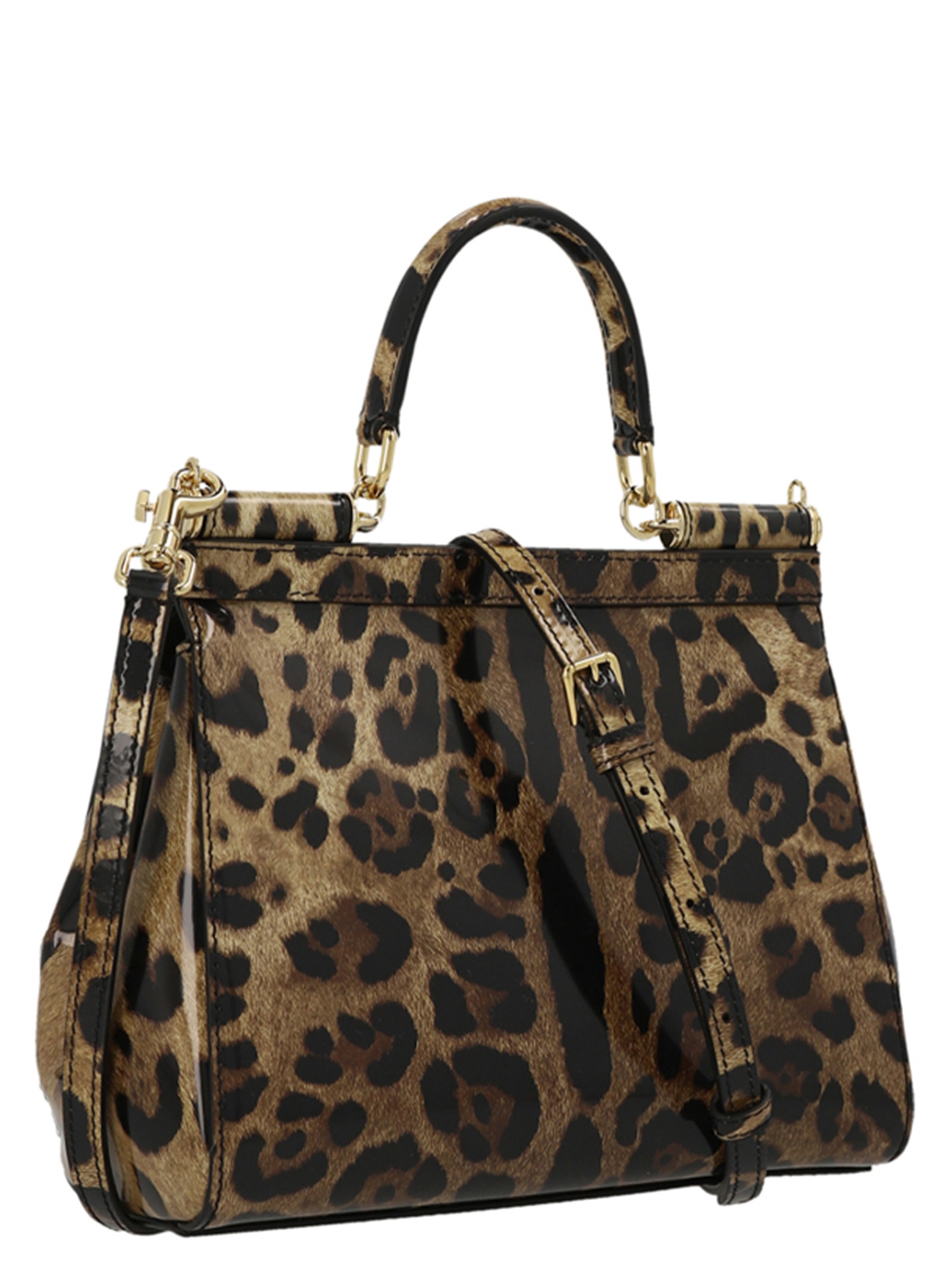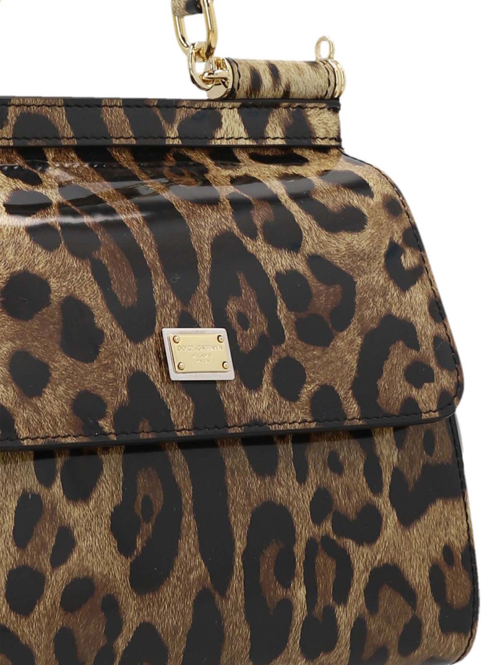 Sicily’ small animal print shiny leather handbag, with front logo plaque, a small top handle, a magnetic closure, and awith adjustable and removable shoulder strap.