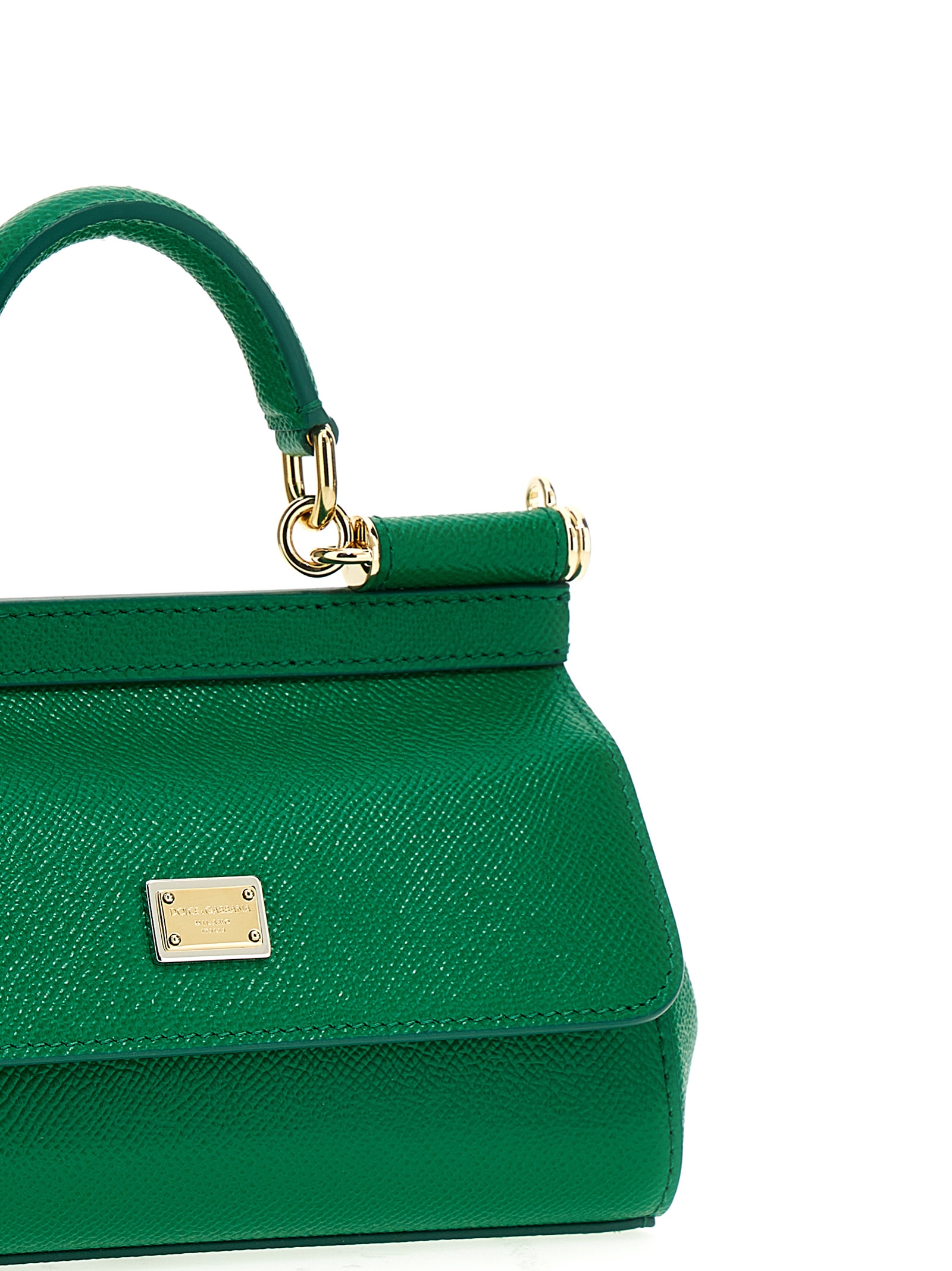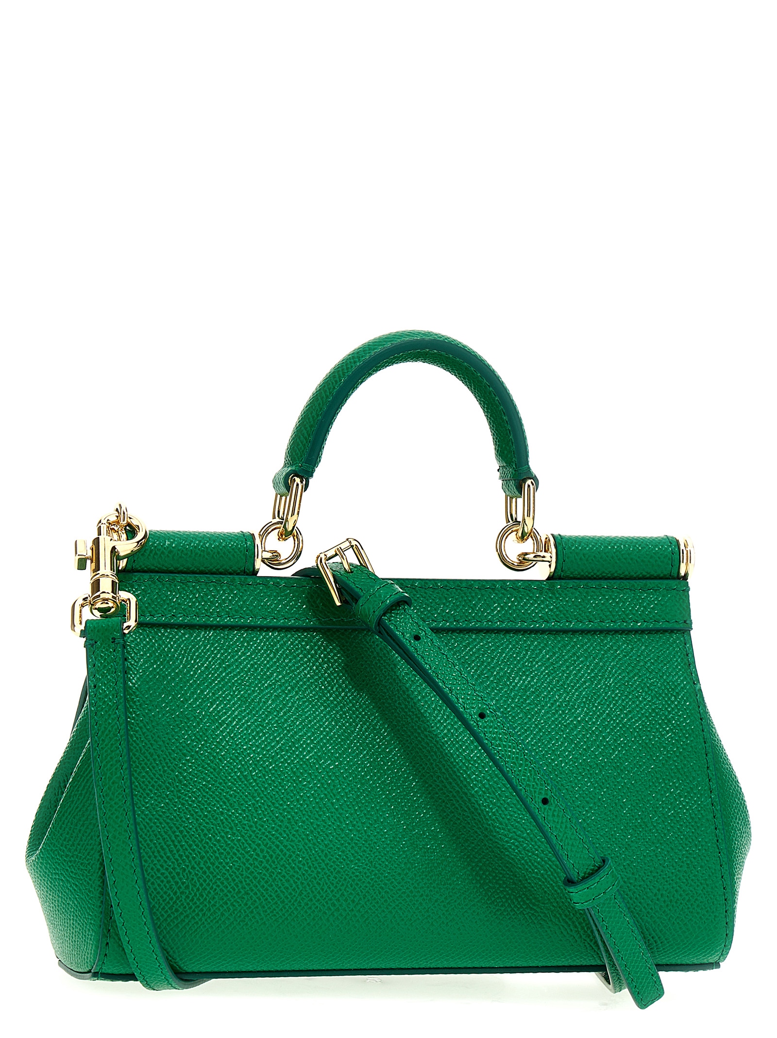 Small ‘Sicily’ dauphine leather handbag with logo plaque on flap closure, fixed handle and removable shoulder strap.