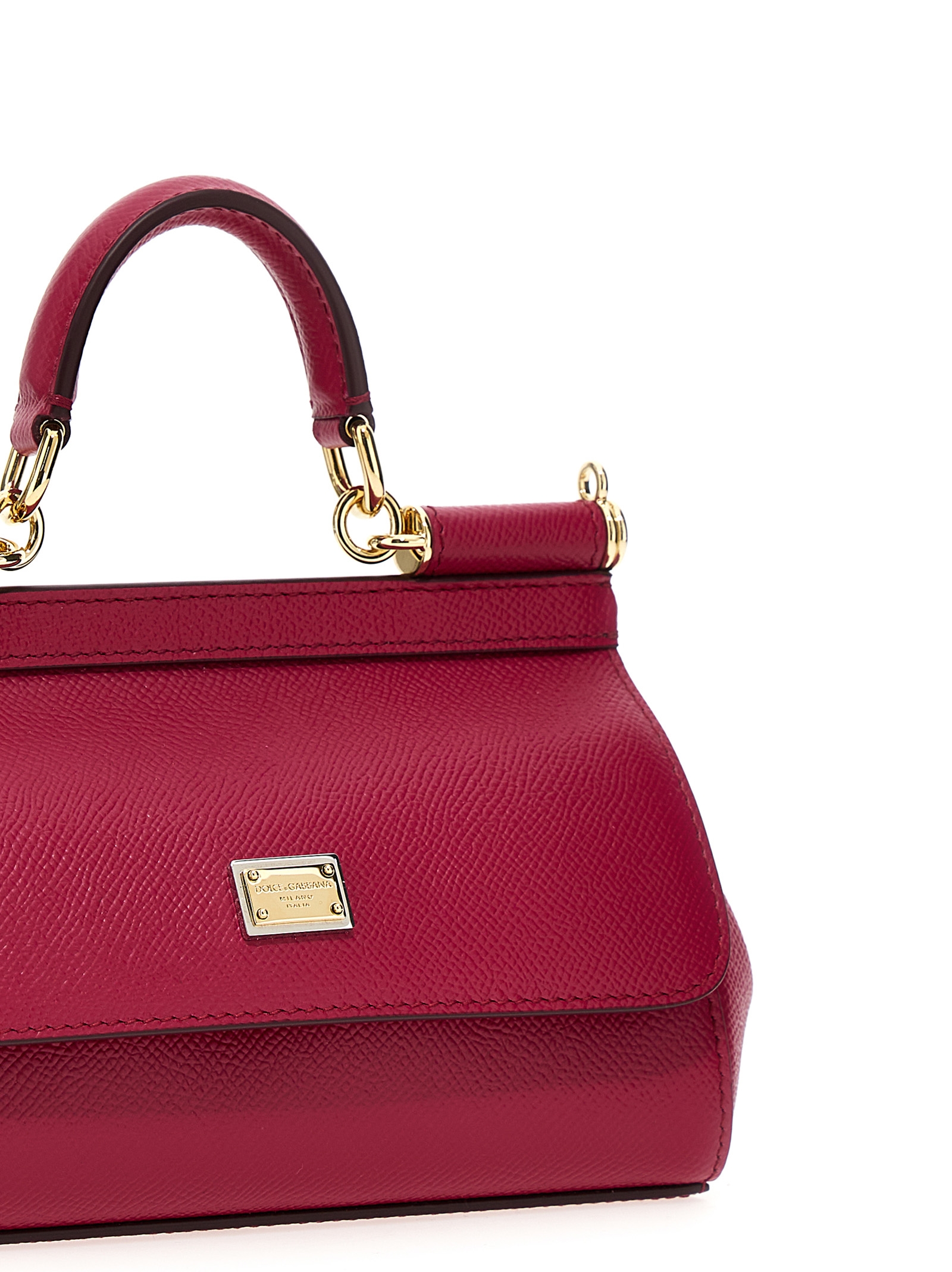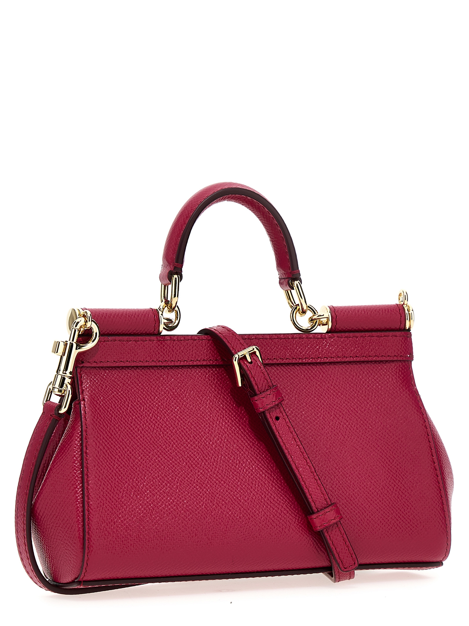 Small Sicily handbag in dauphine leather with logo plaque on flap closure, fixed handle, and removable shoulder strap.