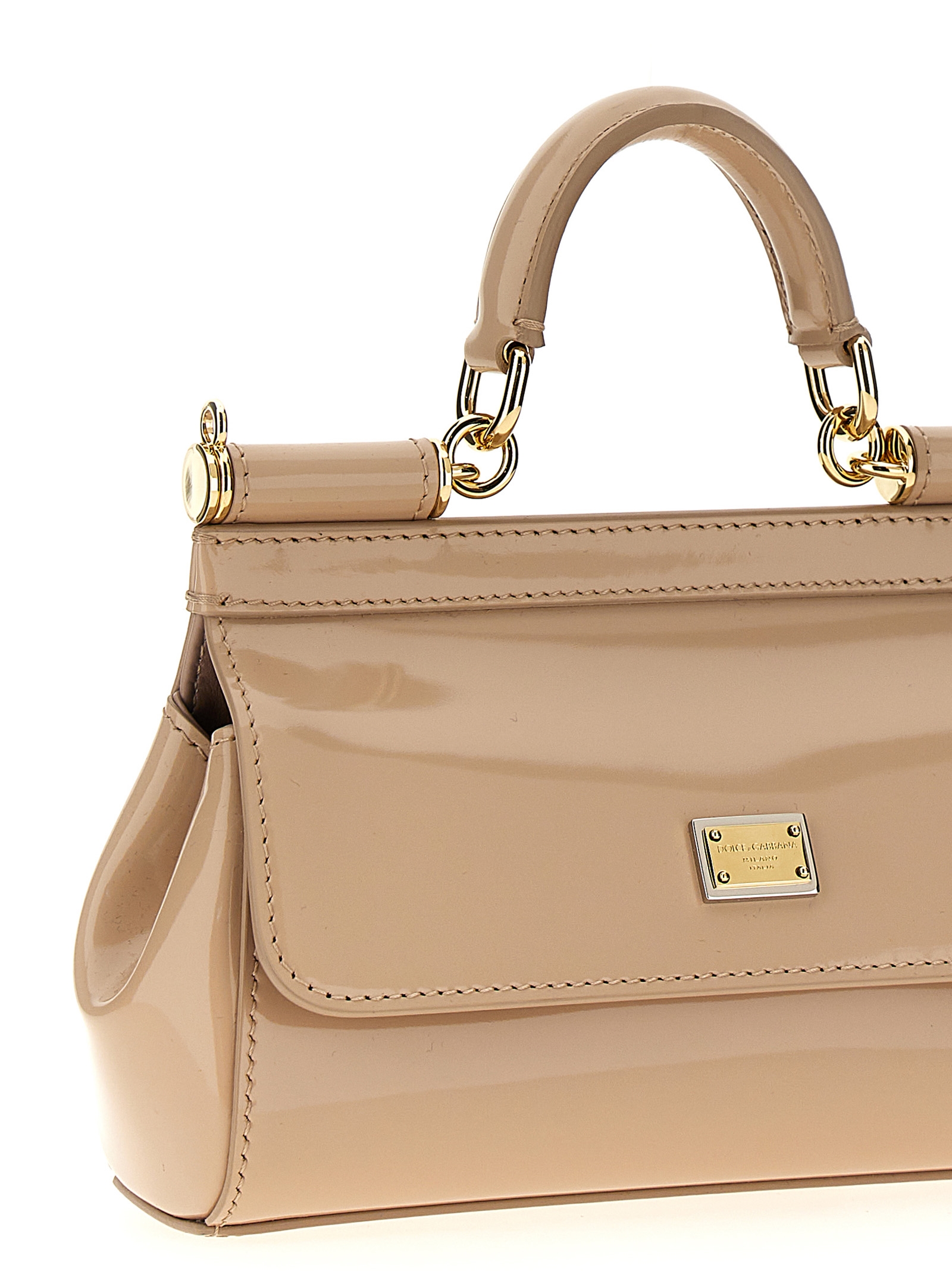 Small ‘Sicily’ handbag in shiny leather, front flap with magnetic closure, bigalvanic logo tag, top handle and adjustable and removable shoulder strap in shiny calf leather.