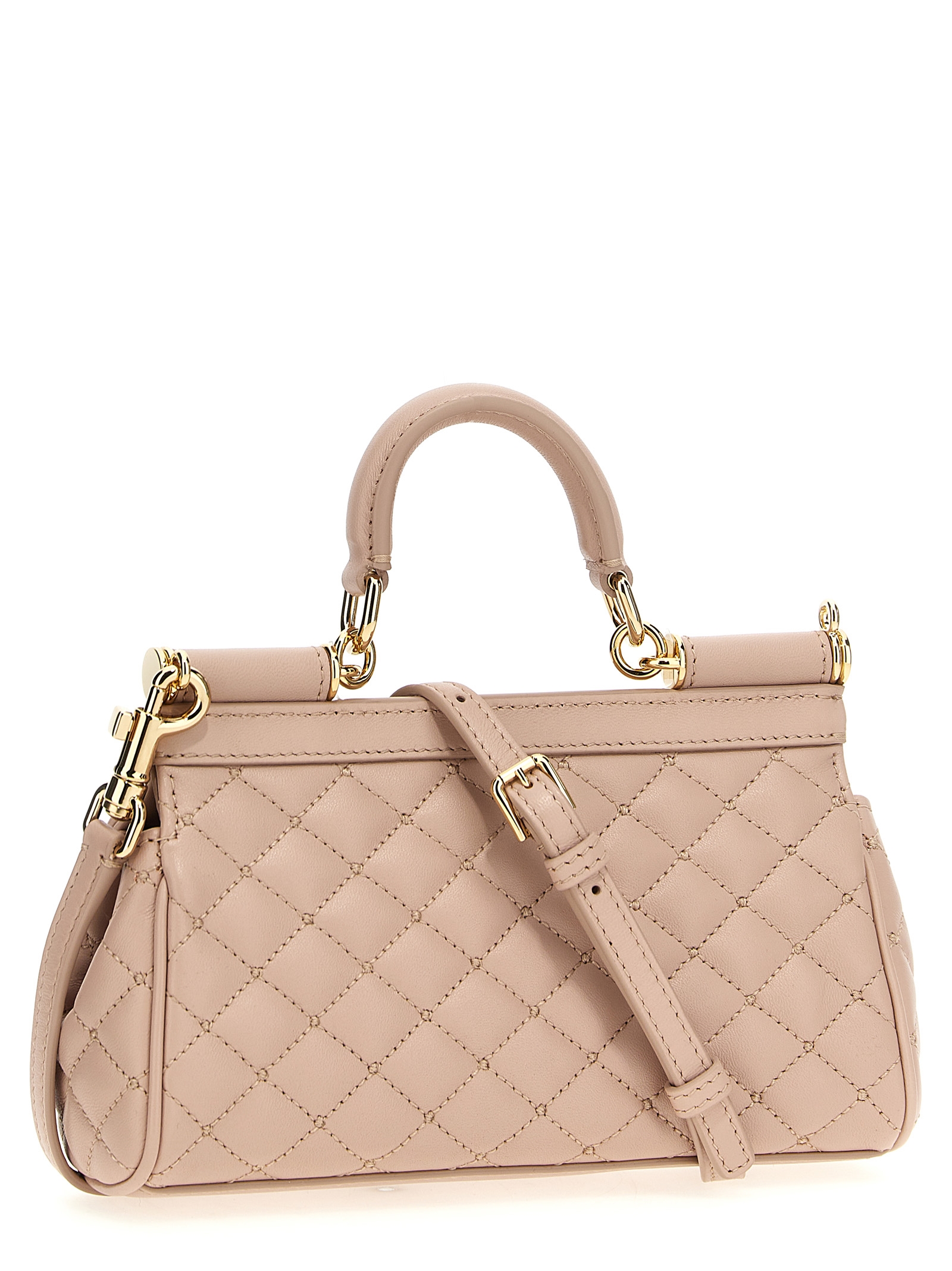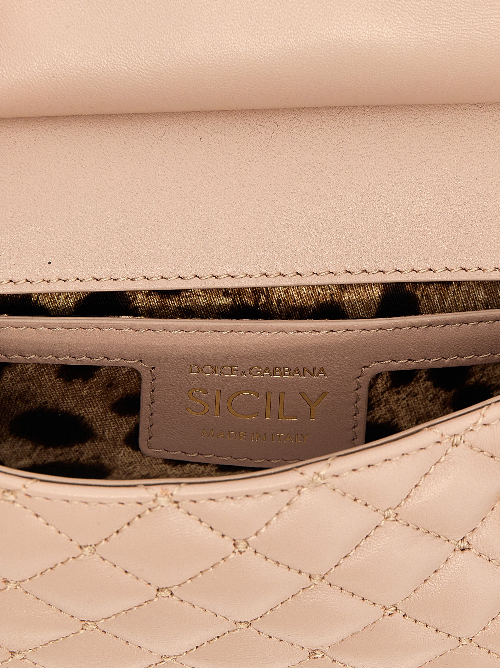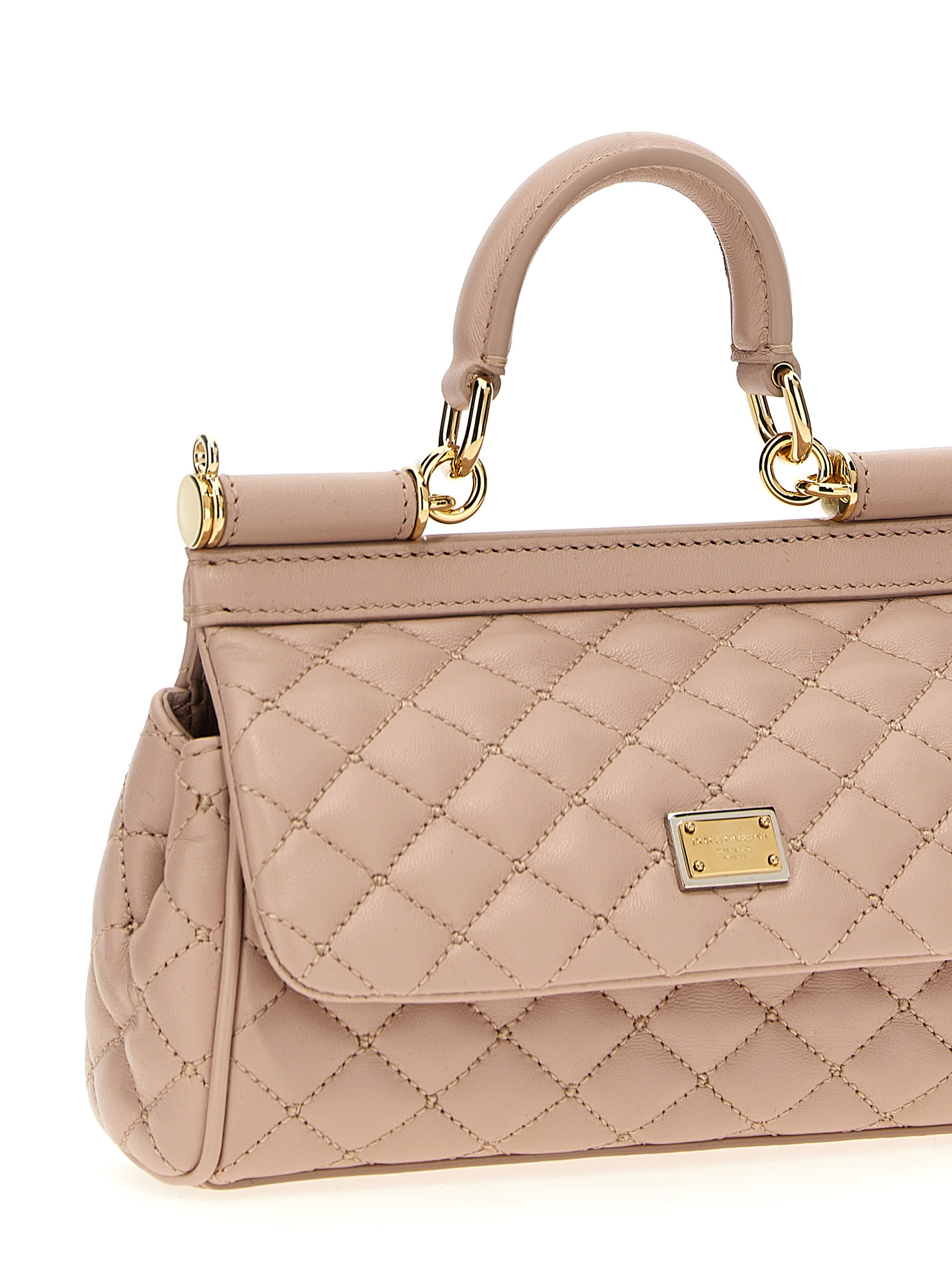 Small ‘Sicily’ matelassé nappa leather handbag, magnetic flap closure, bigalvanic logo tag, fixed top handle, adjustable and removable shoulder strap.