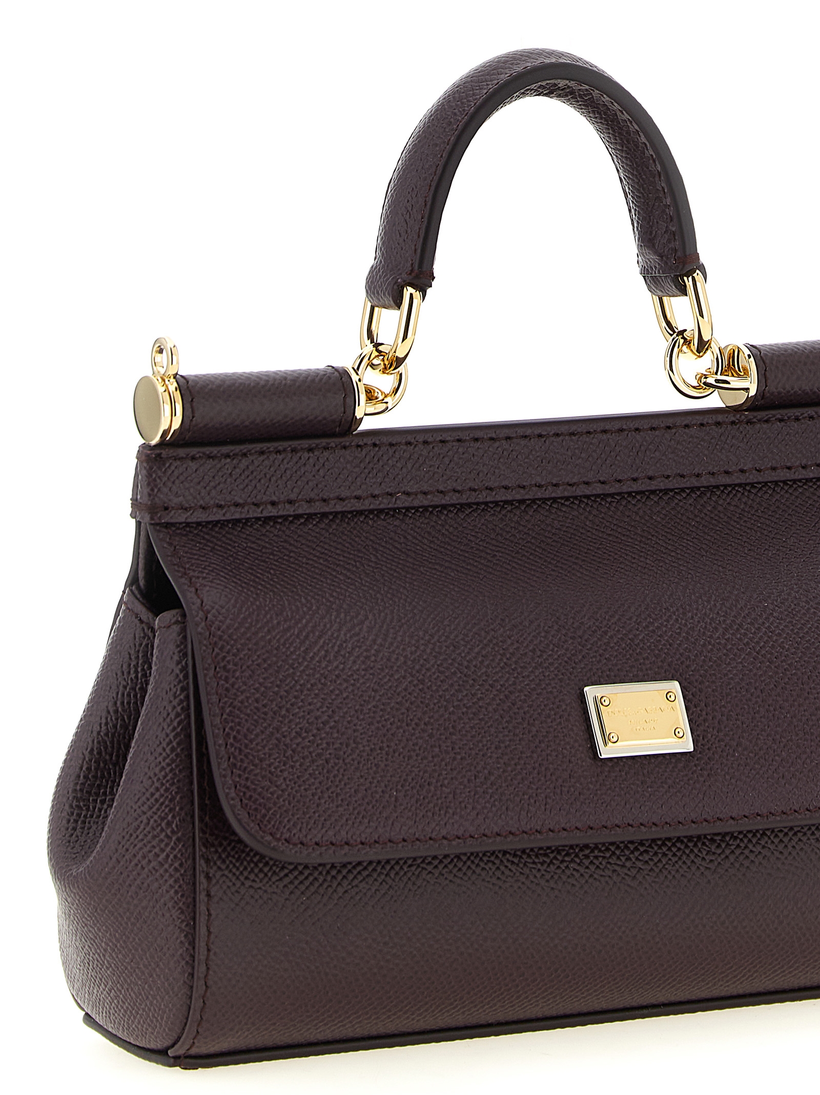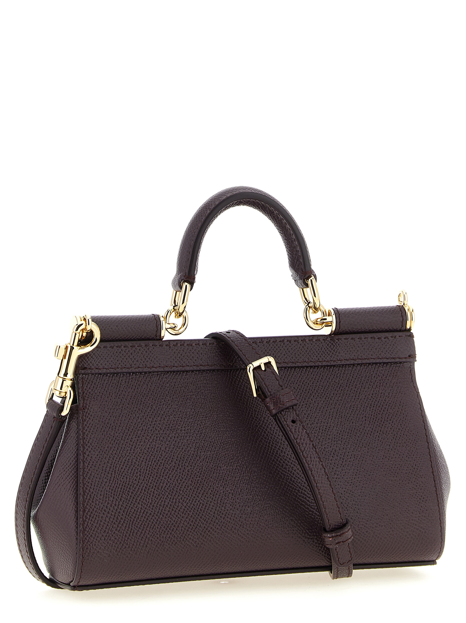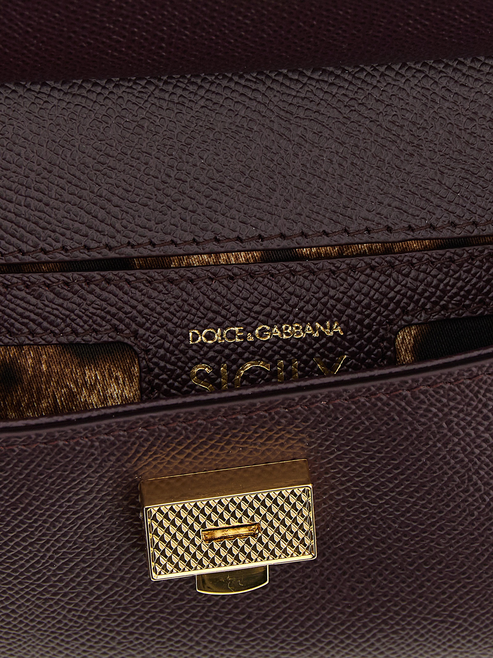 Small ‘Sicily’ Dauphine calf leather handbag, flap closure with metal snap mechanism and front bigalvanic logo tag, fixed handle, metal details, printed fabric lining, adjustable and removable shoulder strap.