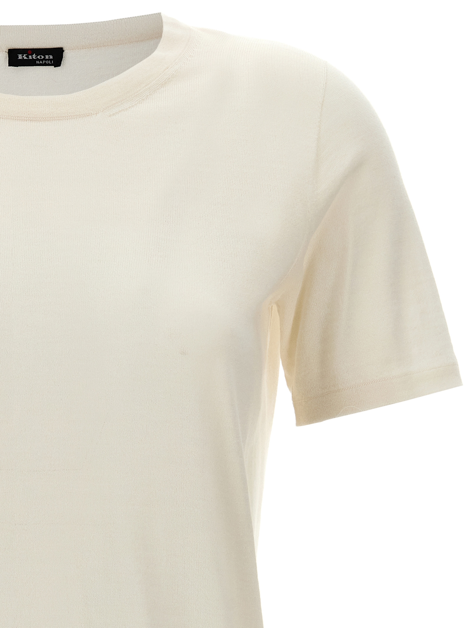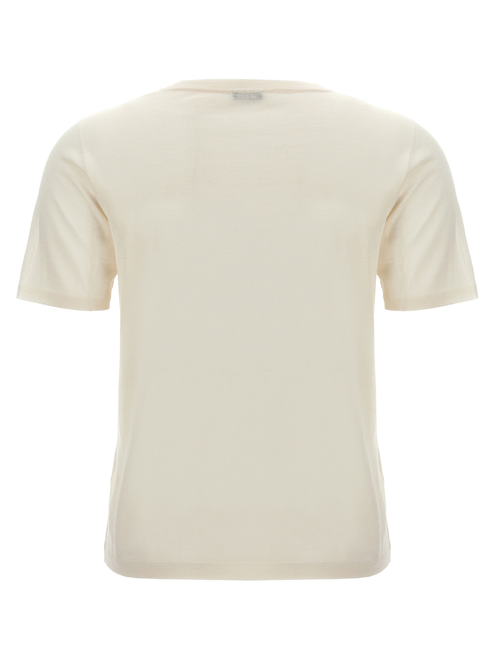 Cashmere and silk crew neck t-shirt with short sleeves, metal logo plaque.