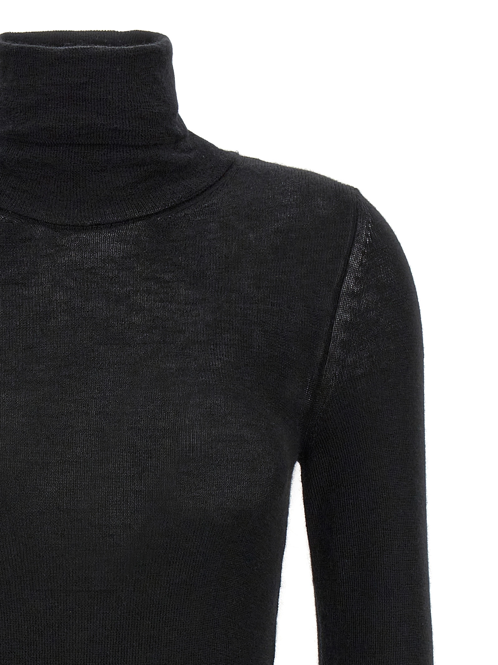 Cashmere and silk turtleneck sweater, high neck, long sleeves.
