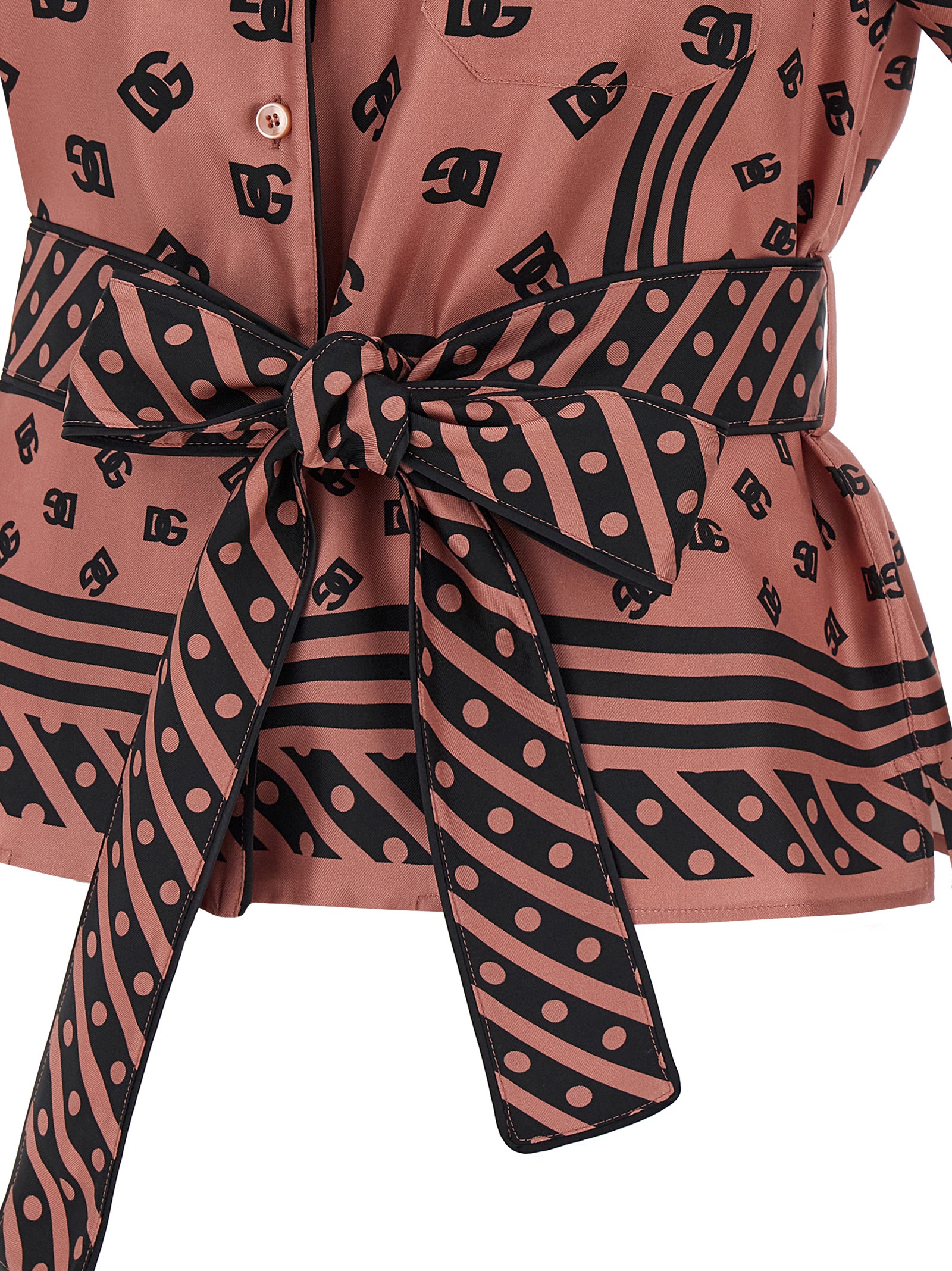 All-over DG logo jacquard silk twill shirt with contrast piping, pajama model, button closure, chest pocket, short sleeves, side slits, removable belt.