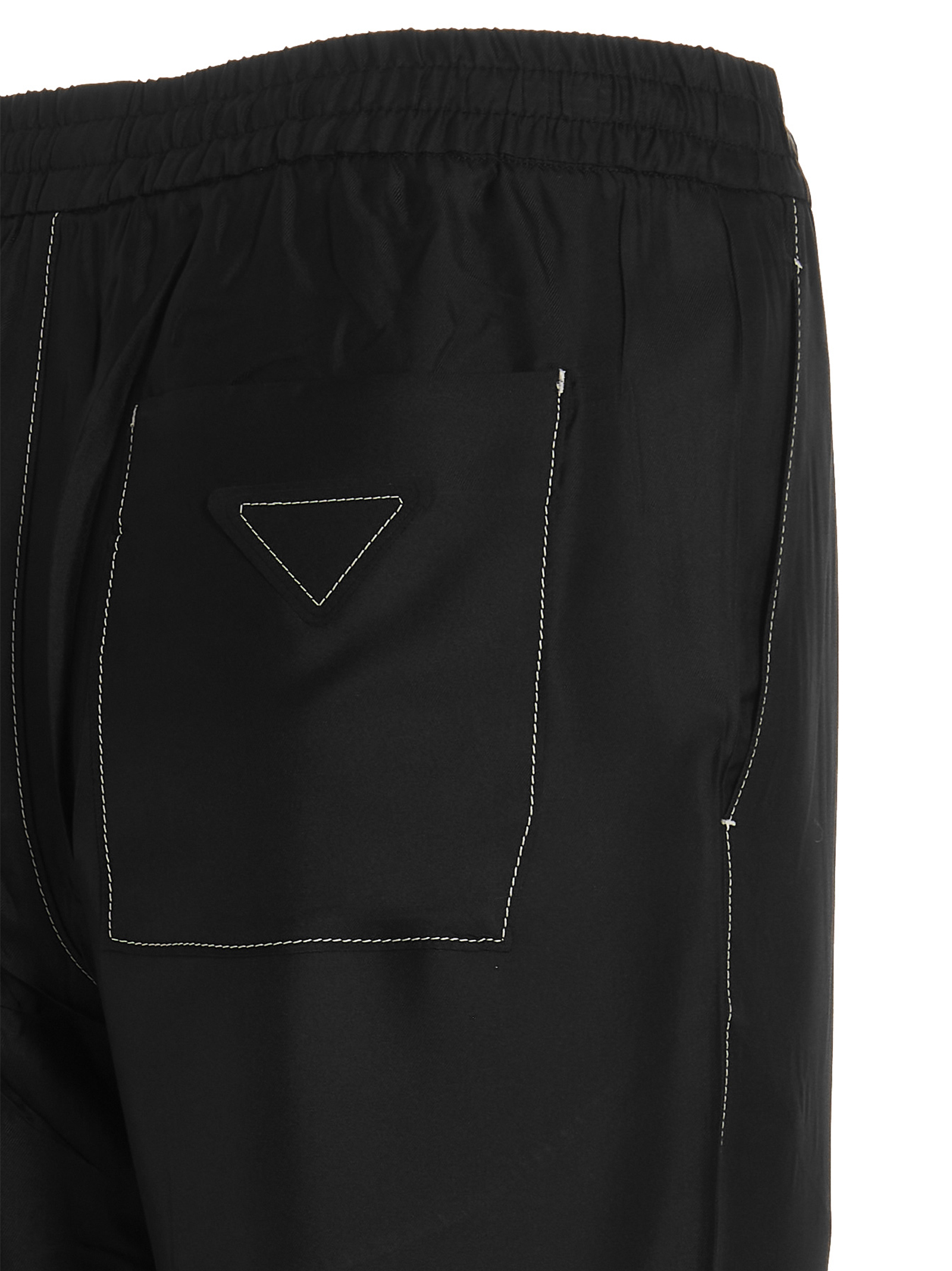 Silk pants featuring an elastic waistband, a zip, hook-and-eye and button closure, pockets and a metal logo application at the back.