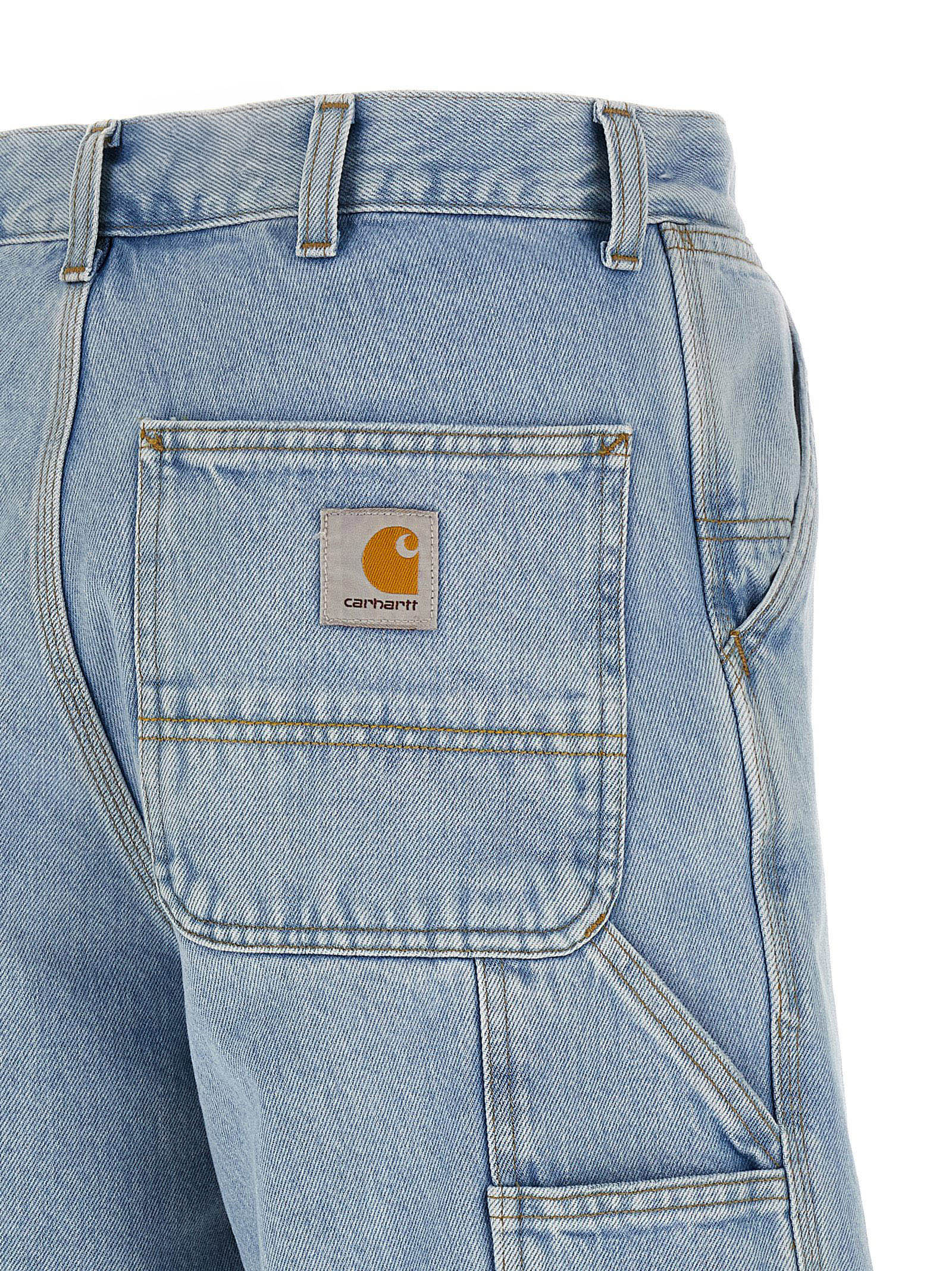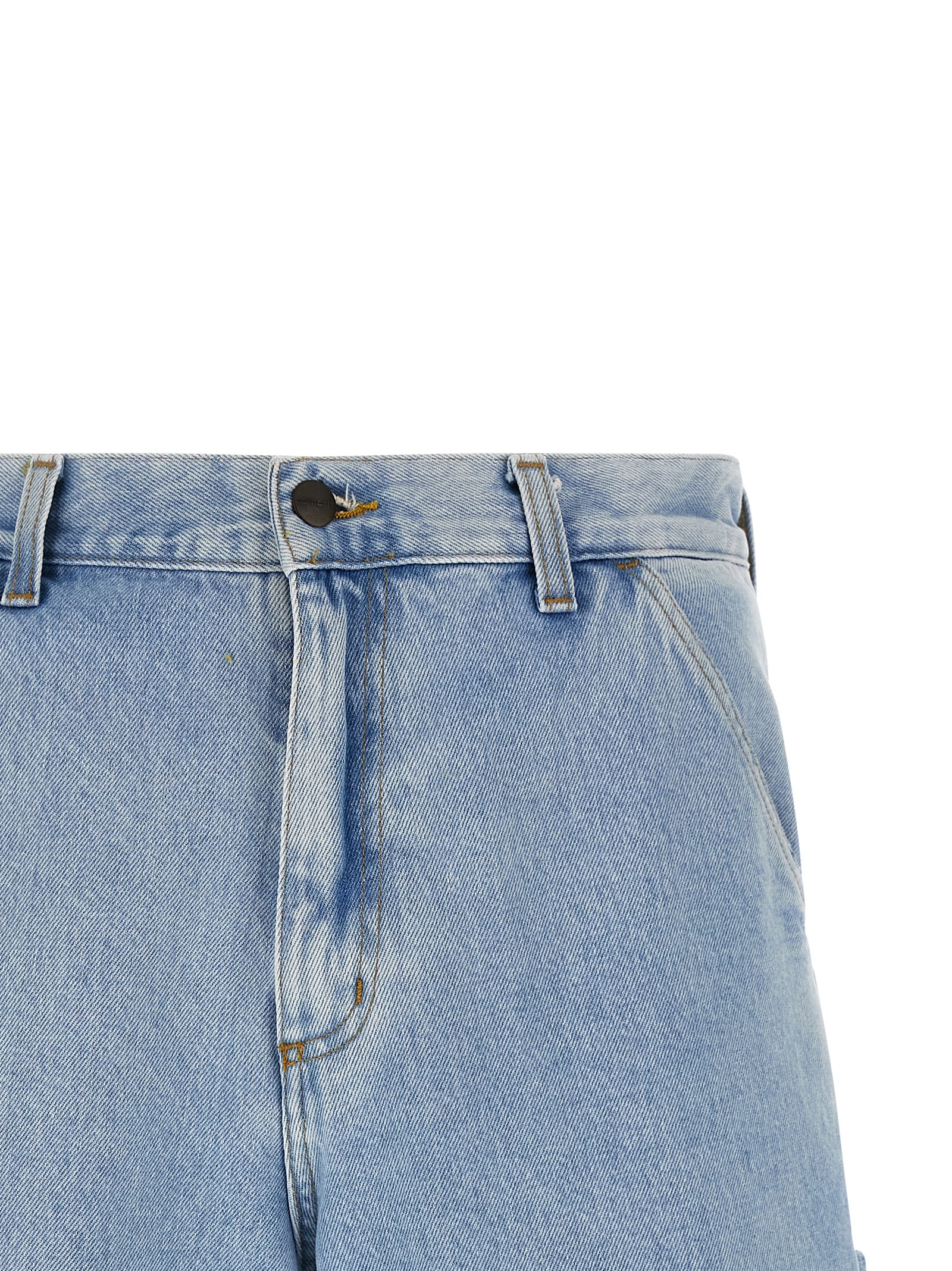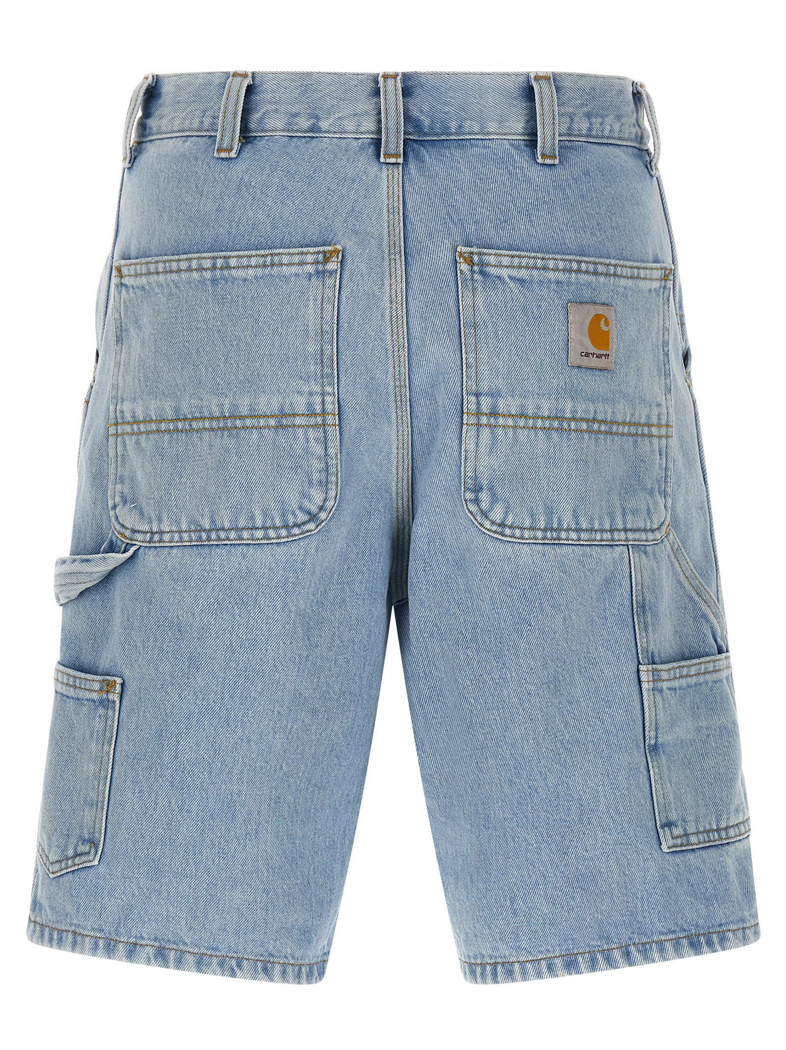 Smith heavy cotton ‘Single Knee’ denim bermuda shorts, workwear style, regular waist, wide leg, front zip and button closure, pockets, back logo patch.