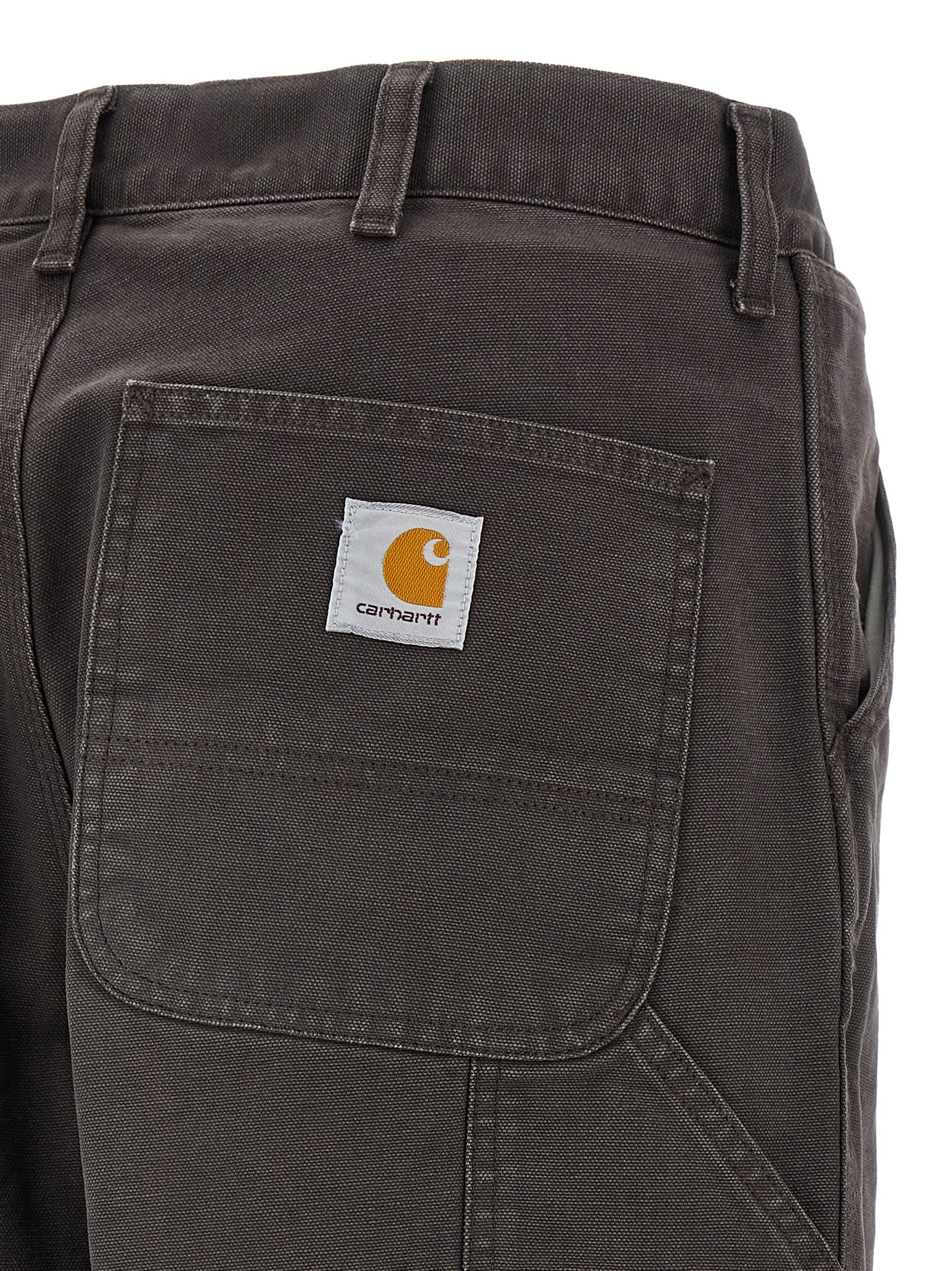 ‘Single Knee’ trousers in heavy Dearborn cotton canvas Stone Canvas wash, wide and straight leg, regular waist, front zip and button closure, pockets, back logo patch.