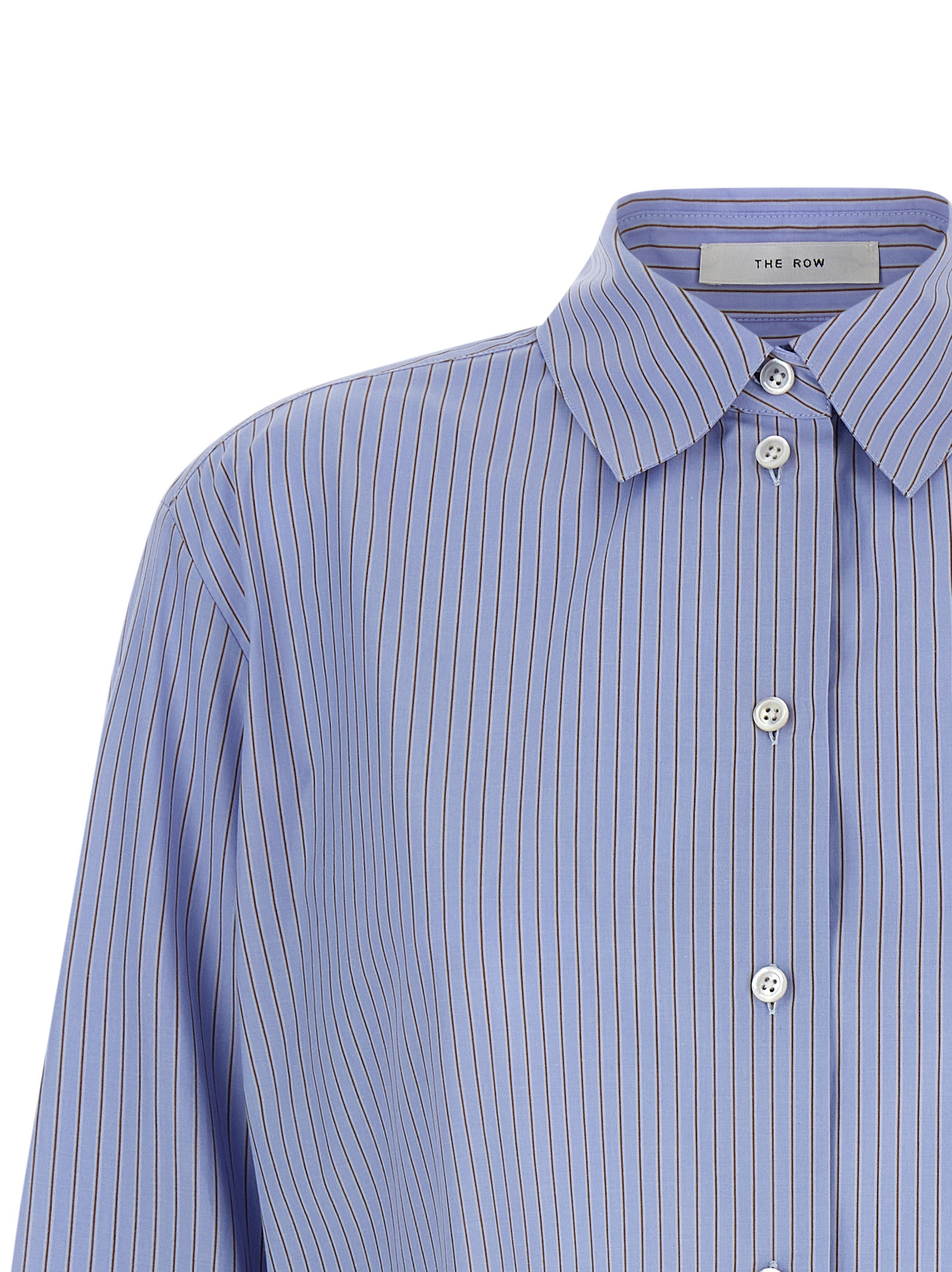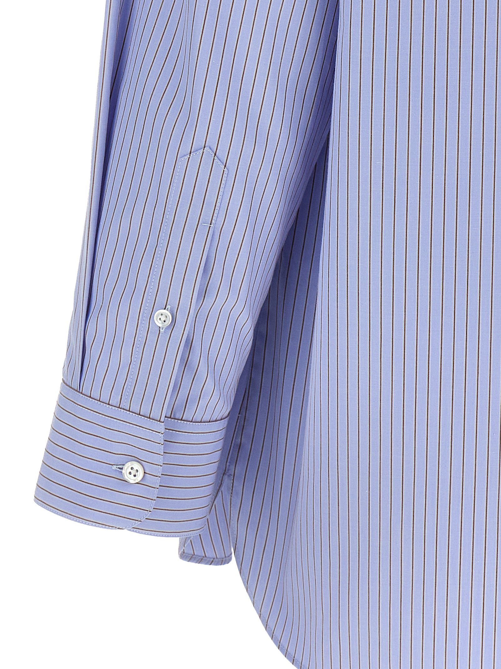 Classic striped ‘Sisilia’ shirt in cotton poplin with collar and front closure with cannon and mother-of-pearl buttons, back yoke, side splits, long sleeves with cuffs and buttons.