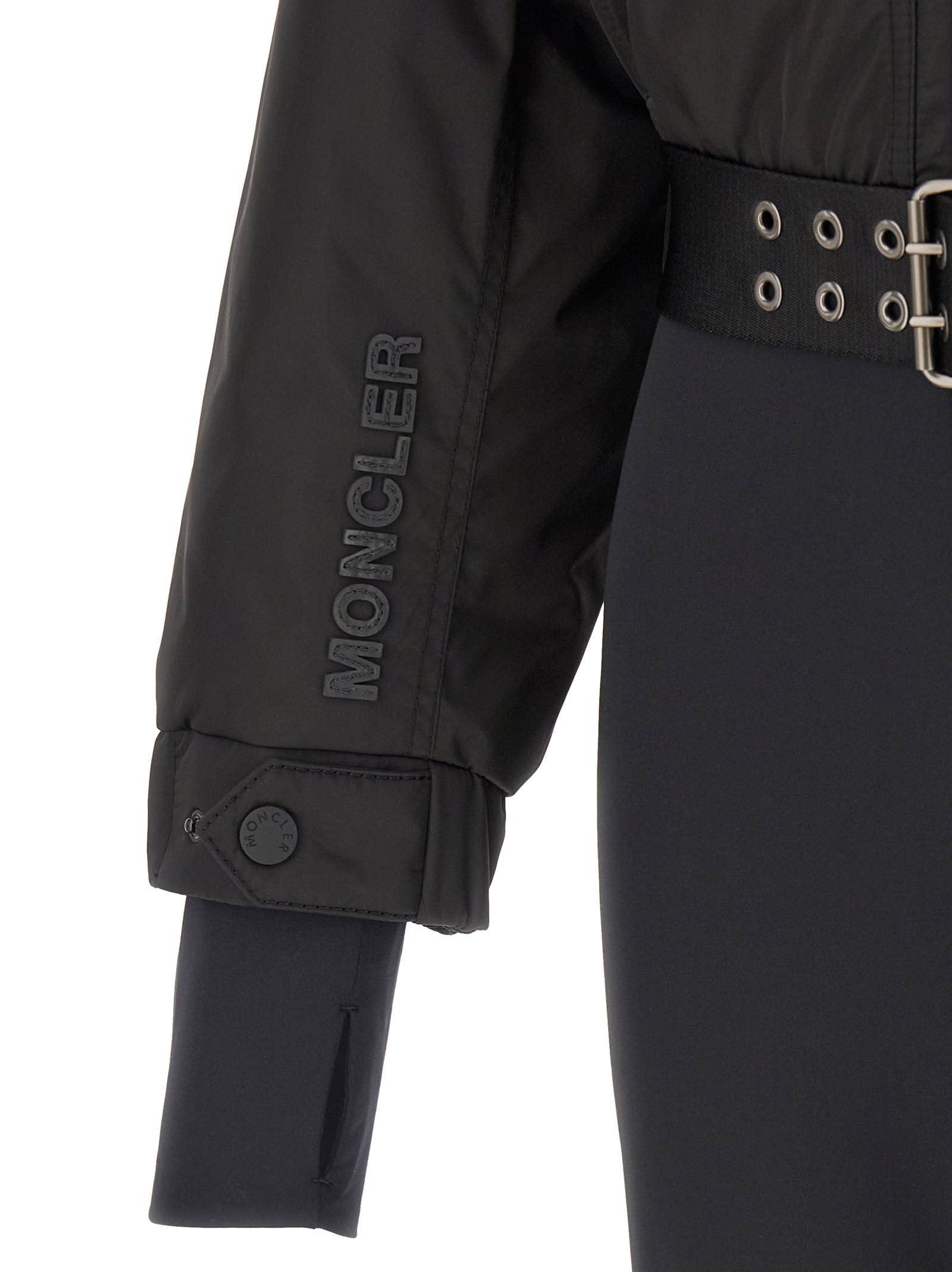 ‘Néve’ ski suit in water-repellent and breathable technical fabric with goose feather padding at the top, adjustable hood with shearling lining, high neck, front zip closure, pockets, long sleeves with elastic cuffs, windproof gaiter and tone-on-tone logo patch applied, fleece lining in the legs, flared leg bottom with zip, tone-on-tone side reinforcement and inner gaiter, Removable belt.