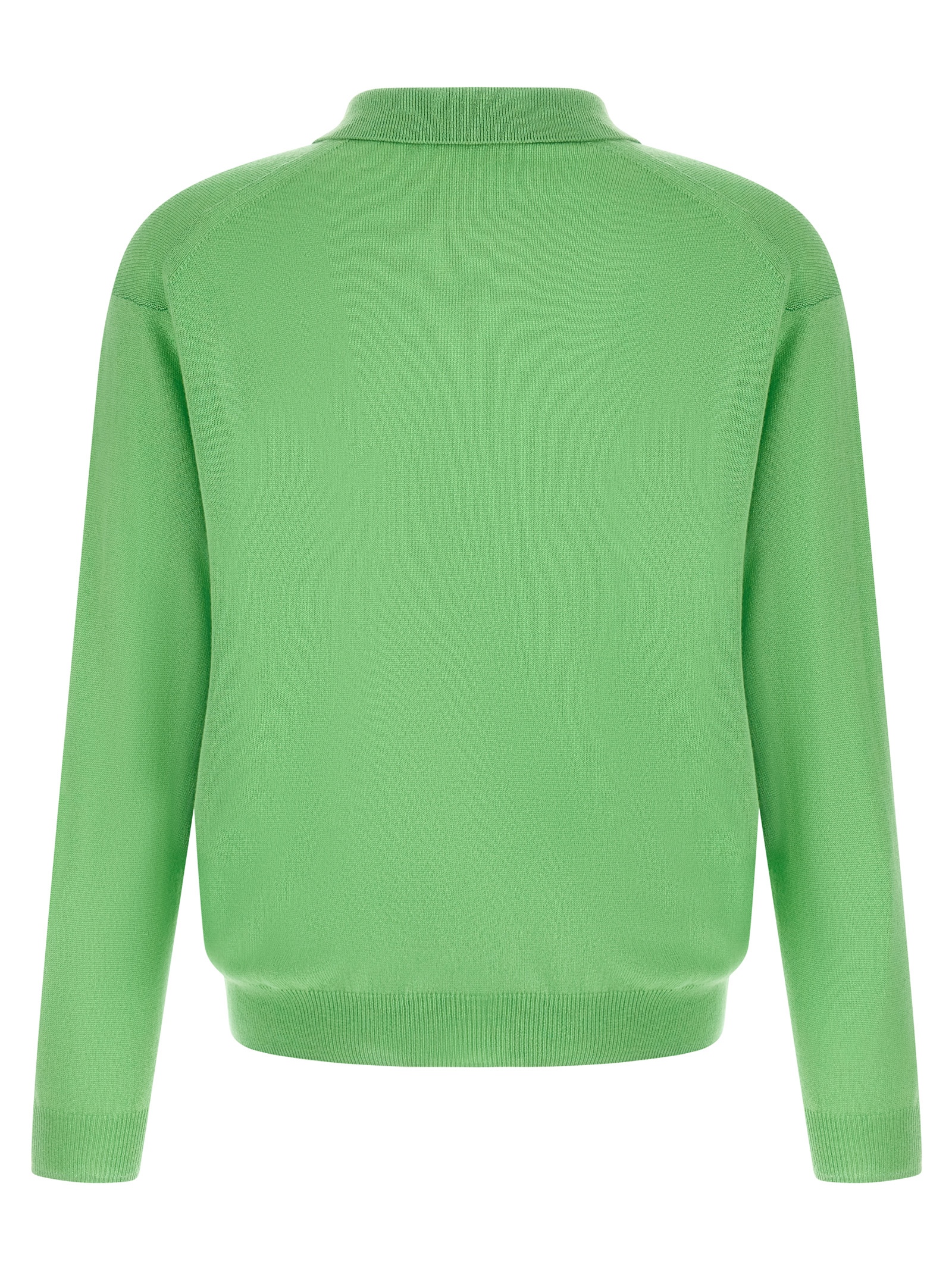 ‘Skipper’ polo shirt in super fine cashmere and silk blend, open collar, long sleeves with cuffs and dropped shoulder, and band on the hem.