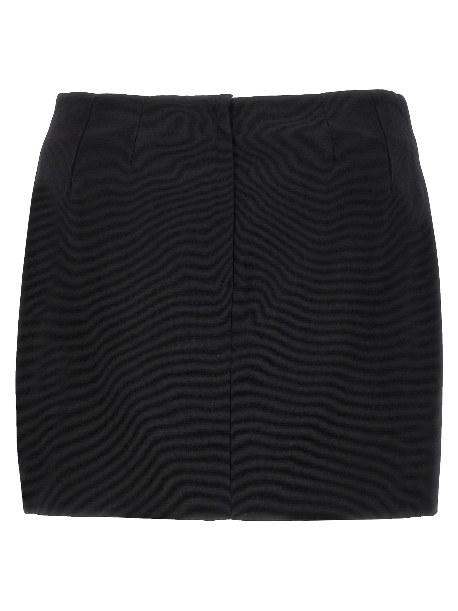 Mini skirt from the ‘Black Sicily’ collection in ottoman fabric with logo plaque on the front, rear zip closure, and stretch satin lining with jacquard logo.