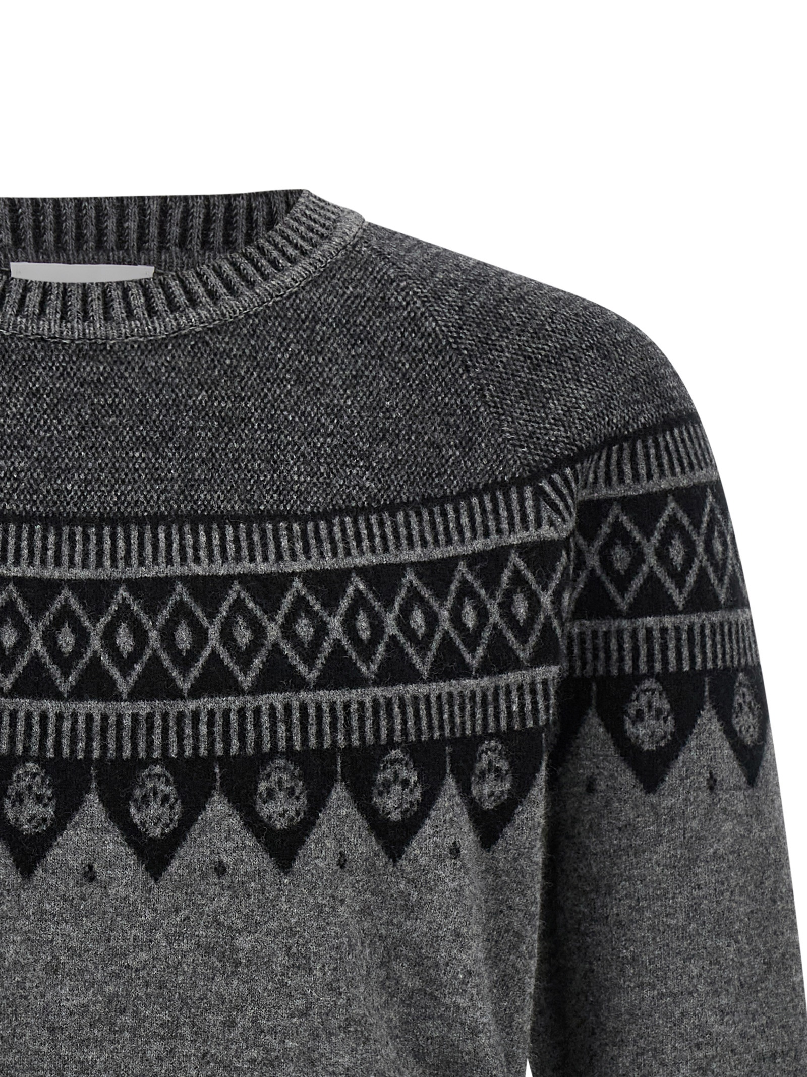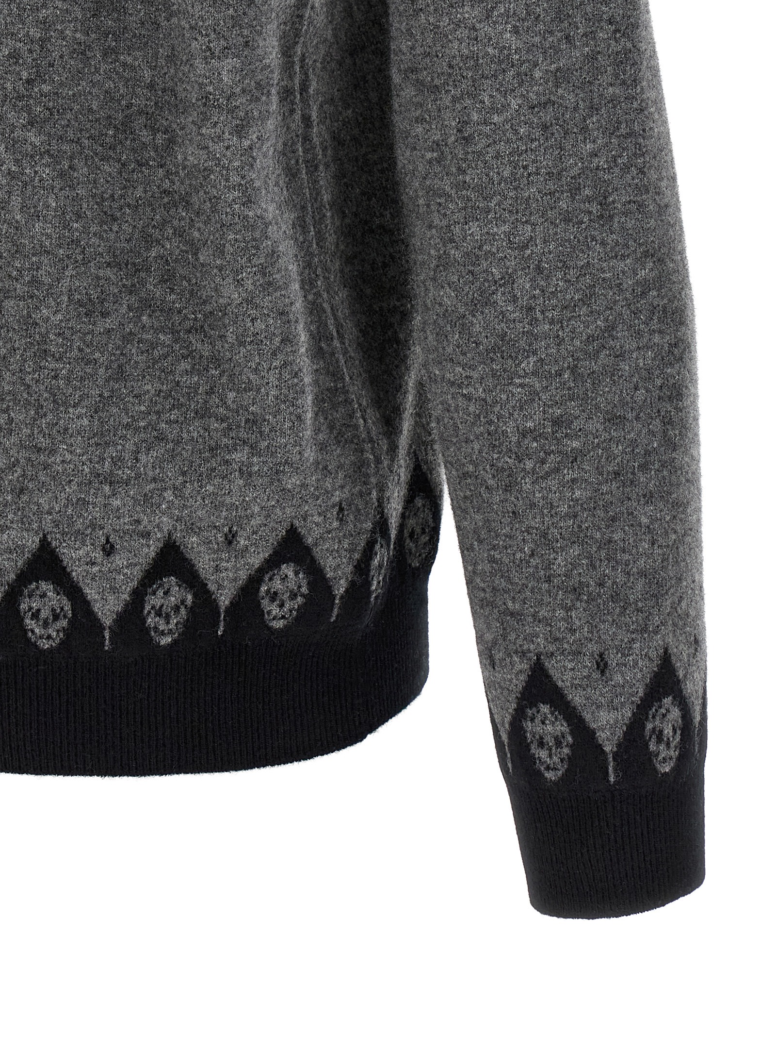 Wool sweater with jacquard ‘Skull’ pattern, crew neck, long cuffed sleeves.