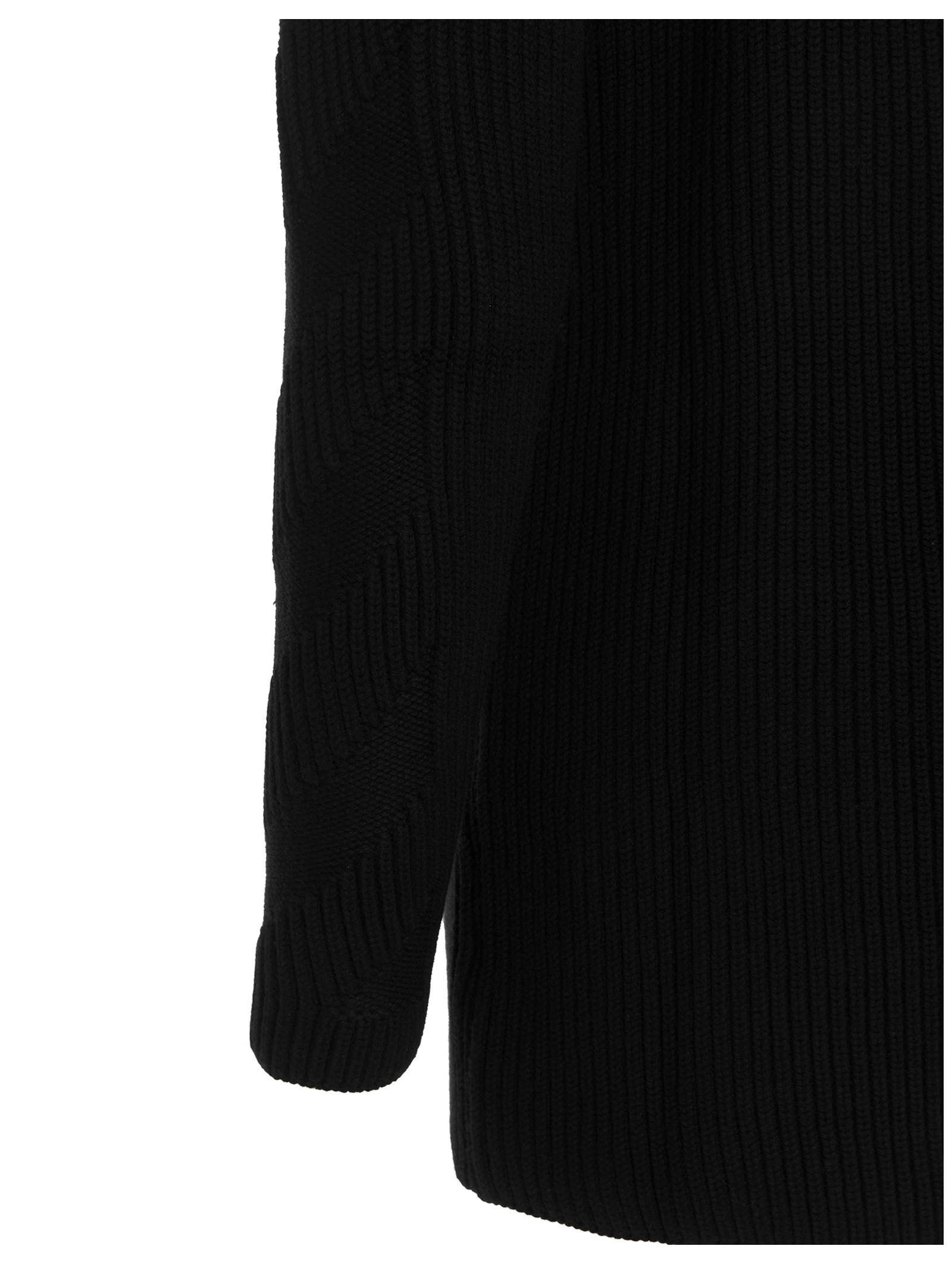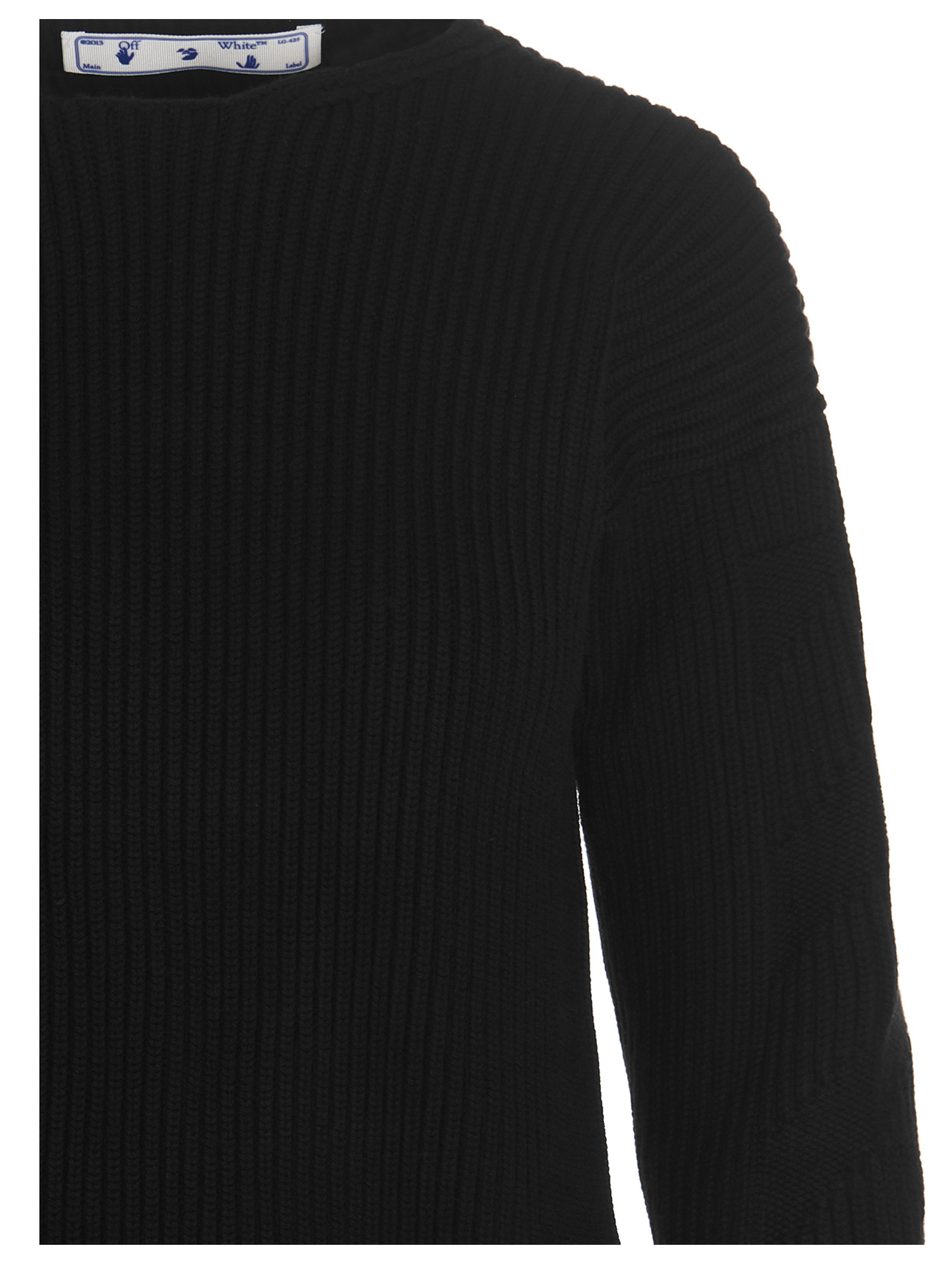 ‘Slick diag’ ribbed wool crewneck sweater with logo intarsia on the sleeves.