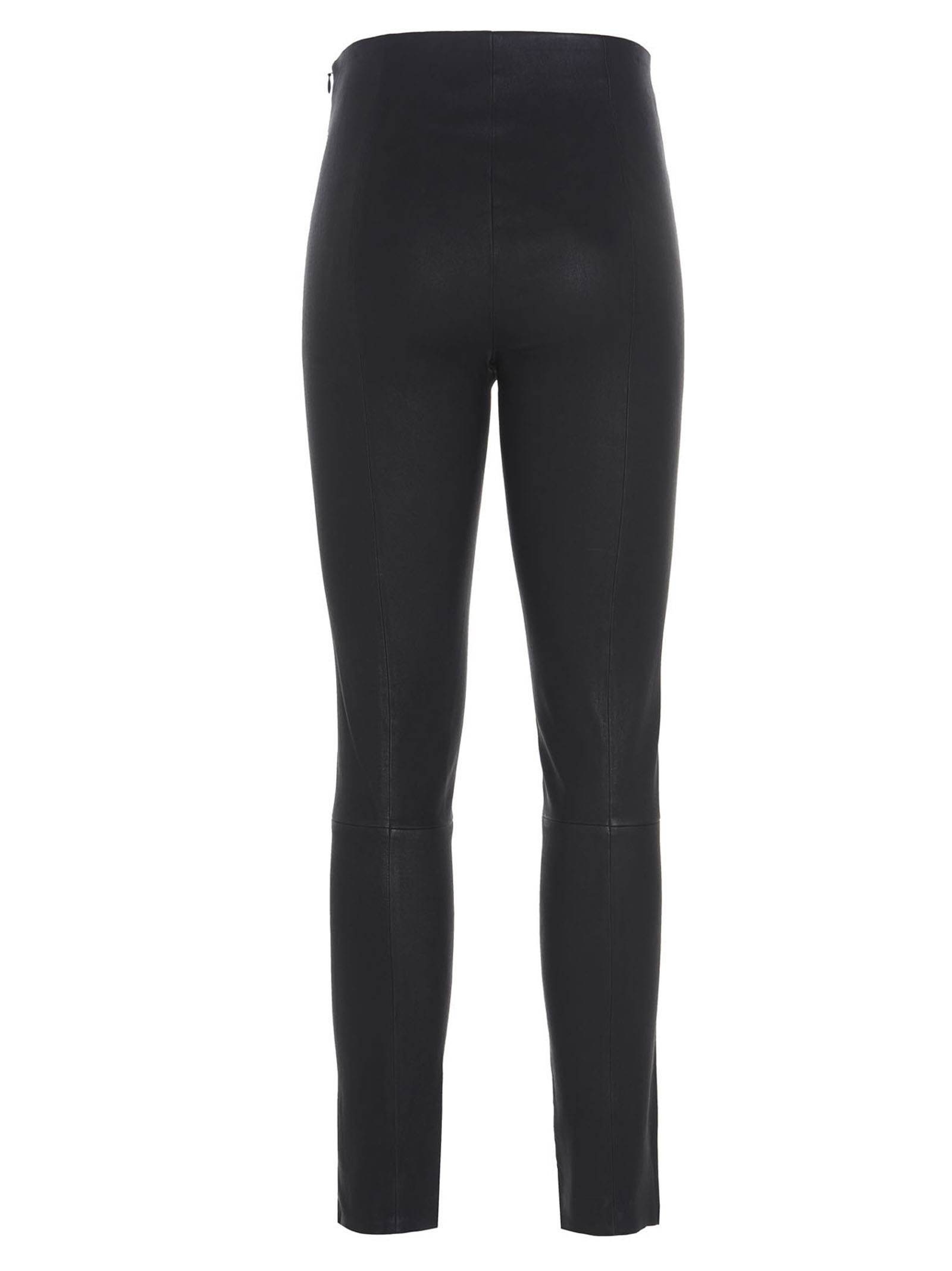 ‘Slit Urban’ leather leggings featuring a zip fastening and a side hook, a split at the bottom. Slim fit.