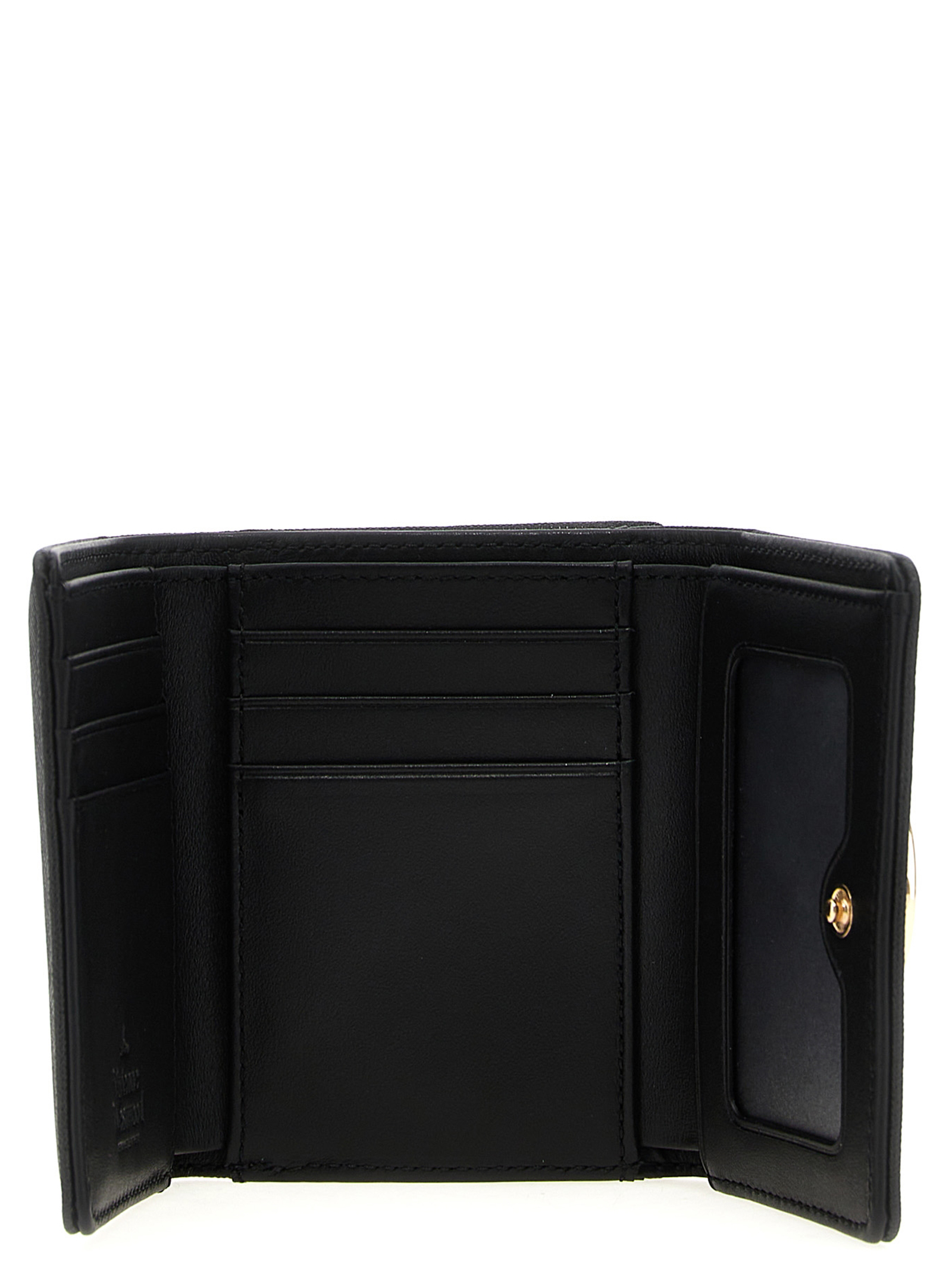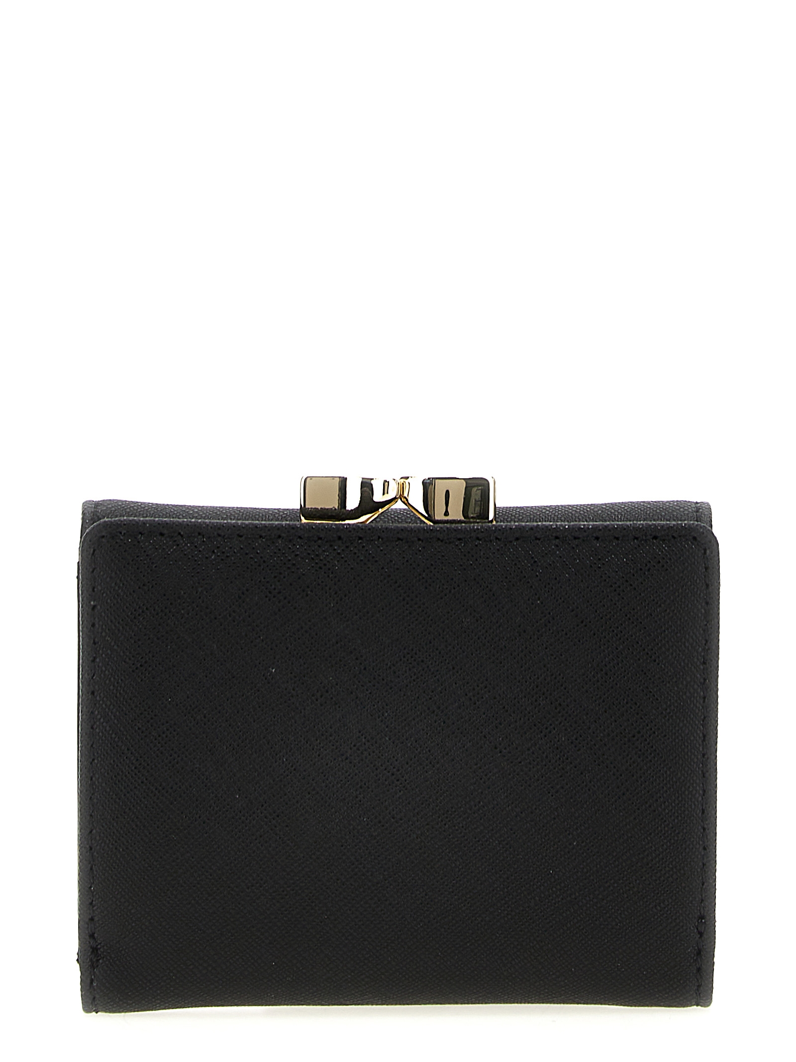 ‘Small Frame Wallet’ wallet in Saffiano leather with metal Orb logo, snap button closure, pocket with snap closure.