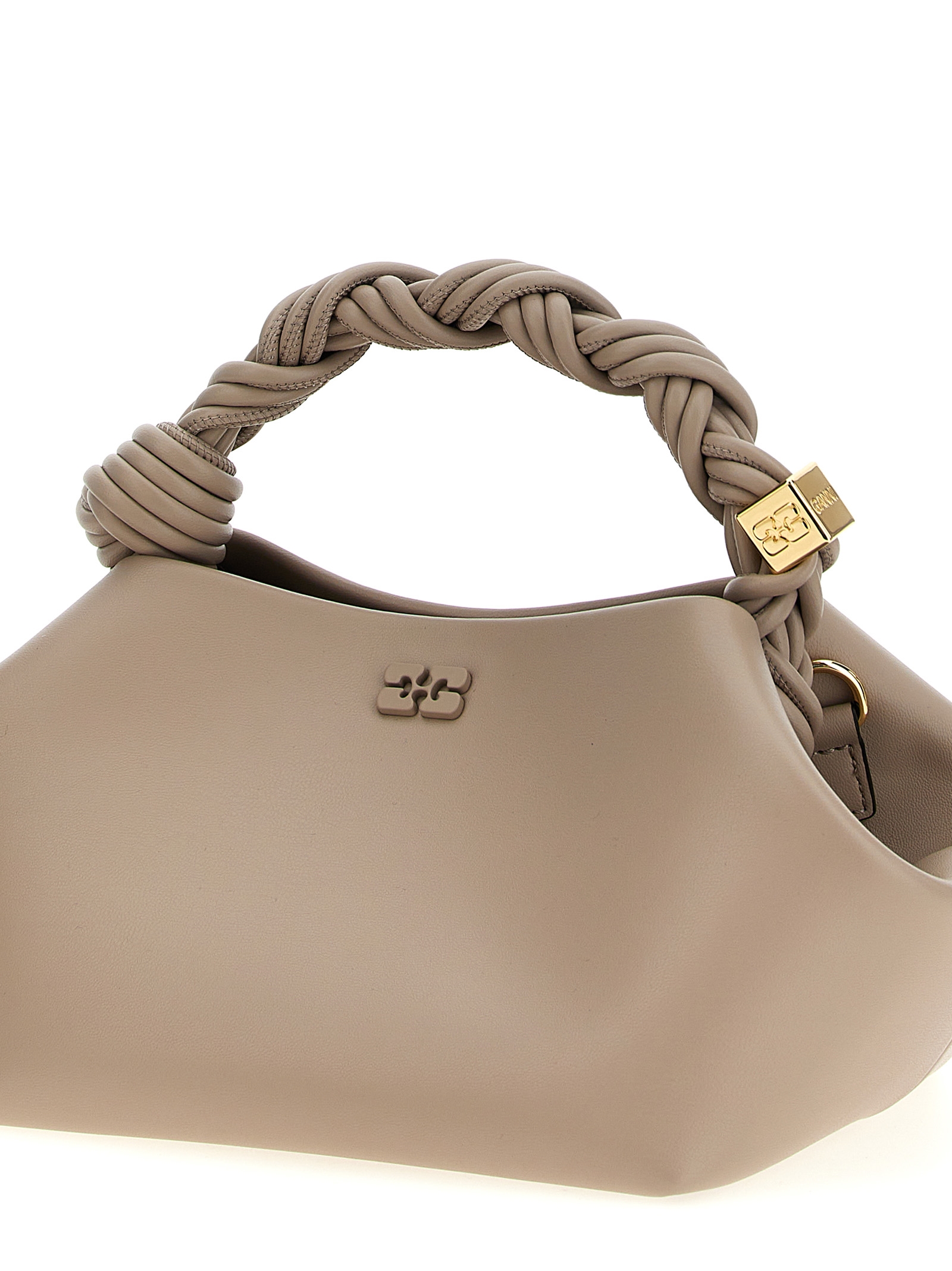 ‘Small Ganni Bou’ handbag in leather-effect fabric with GANNI Butterfly metallic logo on the front, fixed braided handle with metal logo detail, magnetic closure, adjustable and removable shoulder strap.