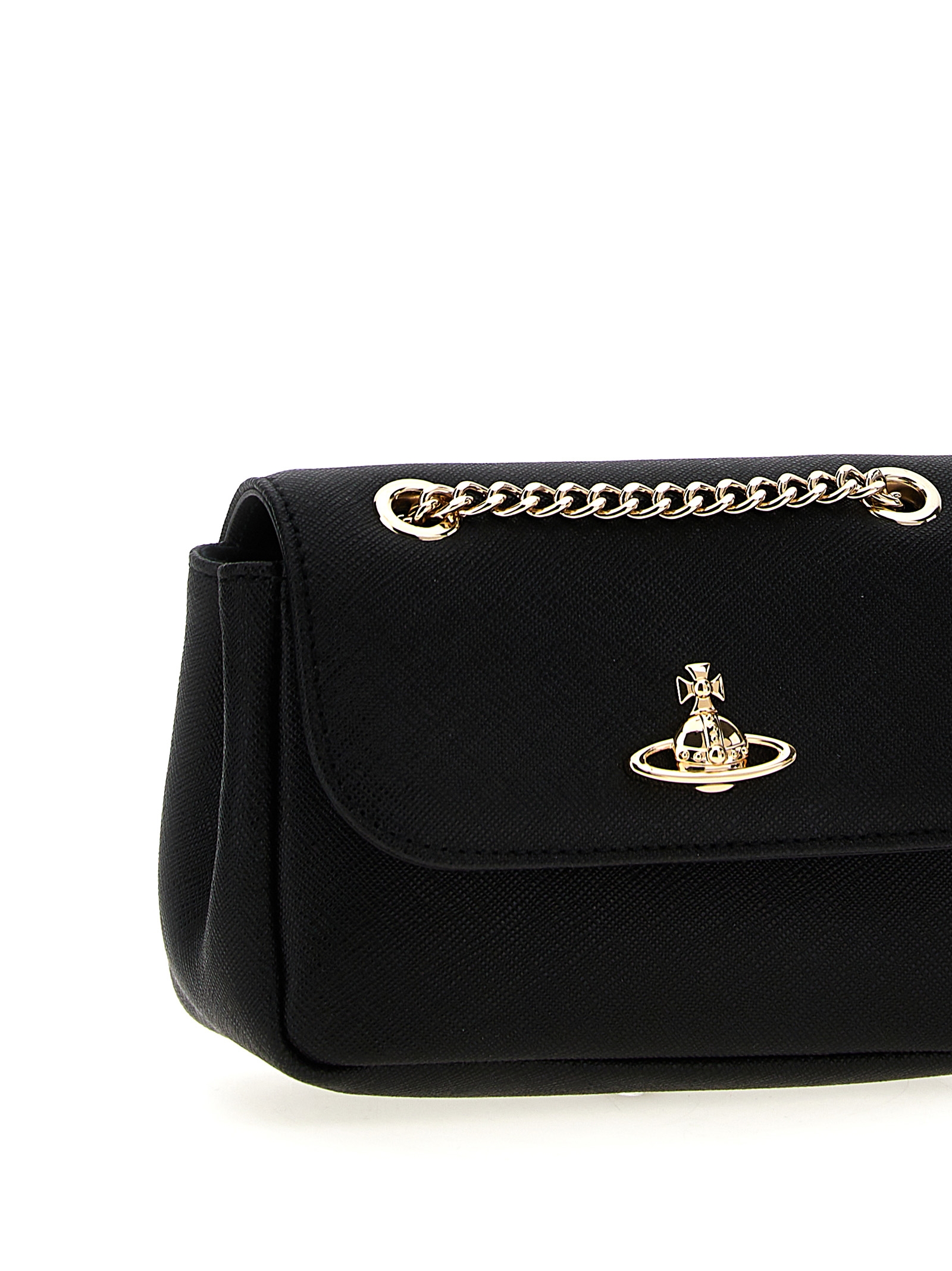 ‘Small Purse Chain’ shoulder bag in Saffiano leather, magnetic flap closure with metal Orb logo on the front, sliding chain shoulder strap.
